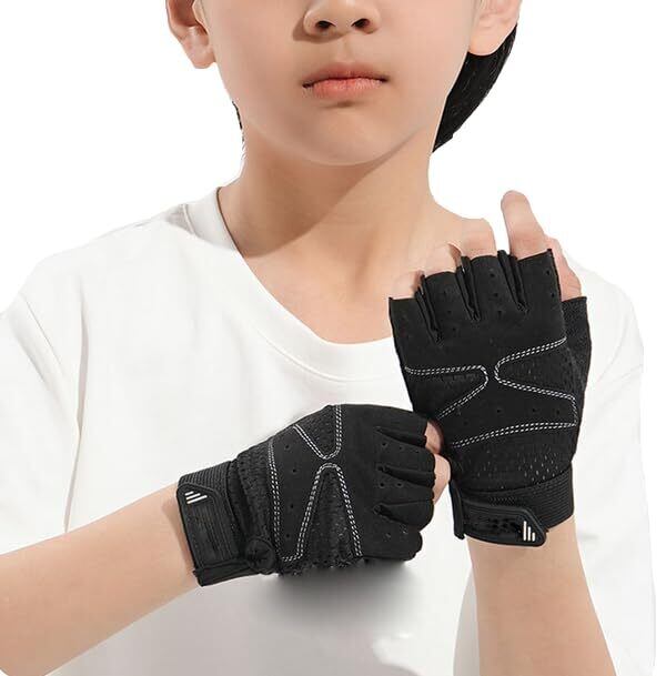 子供 自転車手袋 キッズ 夏 サイクリンググローブ 指切りグローブ 男の子 女の子 滑り止め 半指 指なし手袋 通気性 メッシュ 薄手 吸汗速乾 4-7歳 小学生 アウトドア ロードバイク スケート スポーツケア用品 無地 M