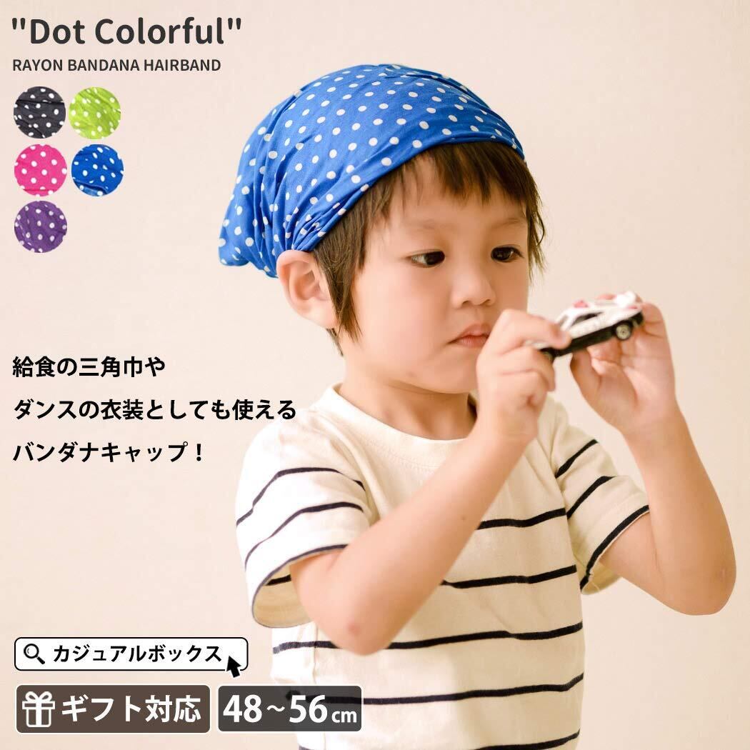 [カジュアルボックス] CHARM 子供用 三角巾 [ フリーサイズ 保育園/どっとからふる 全5色展開 ] バンダナ ヘアバンド レーヨン ゴム