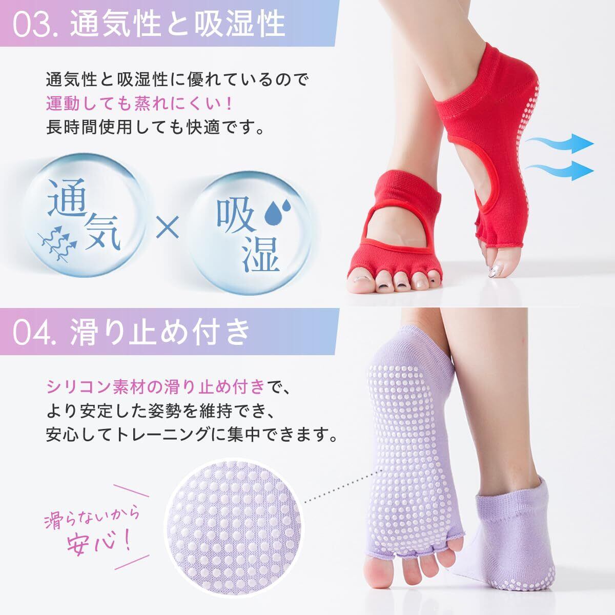 [HARY SHOP] ヨガ ソックス 5本指 滑り止め ピラティス ジム レディース
