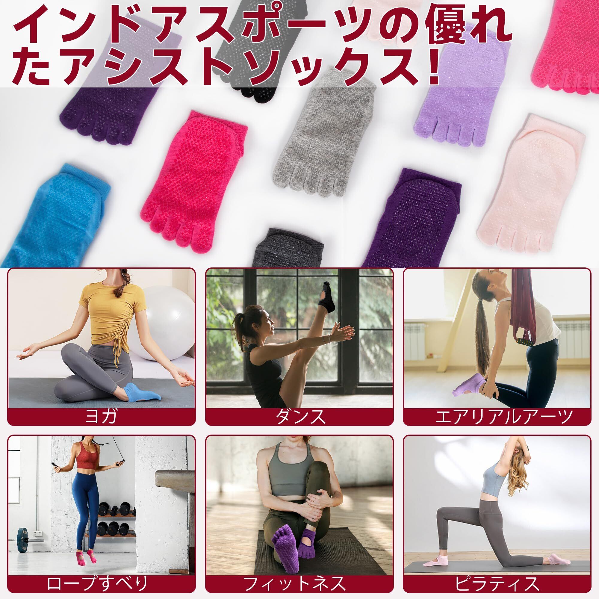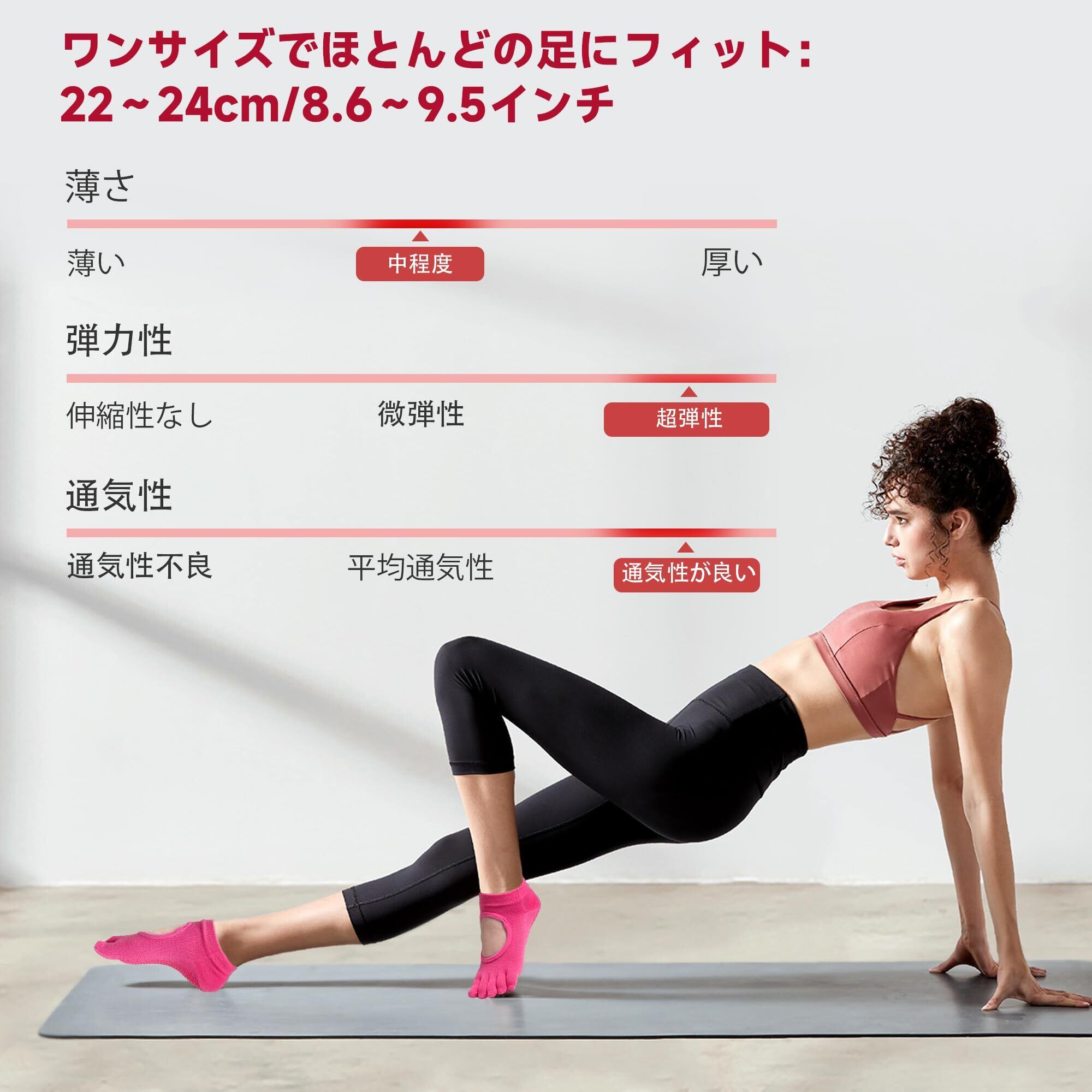 「高品質」 当社のヨガソックスは高品質のポリエステル繊維とPVC素材で作られており、適度な厚さ、高い伸縮性、優れた通気性を備えています。 このヨガソックスは、足が22~24cm / 8.6~9.5インチの間のほとんどの女性にフィットします。 洗濯機洗いまたは穏やかな手洗いをサポートします。