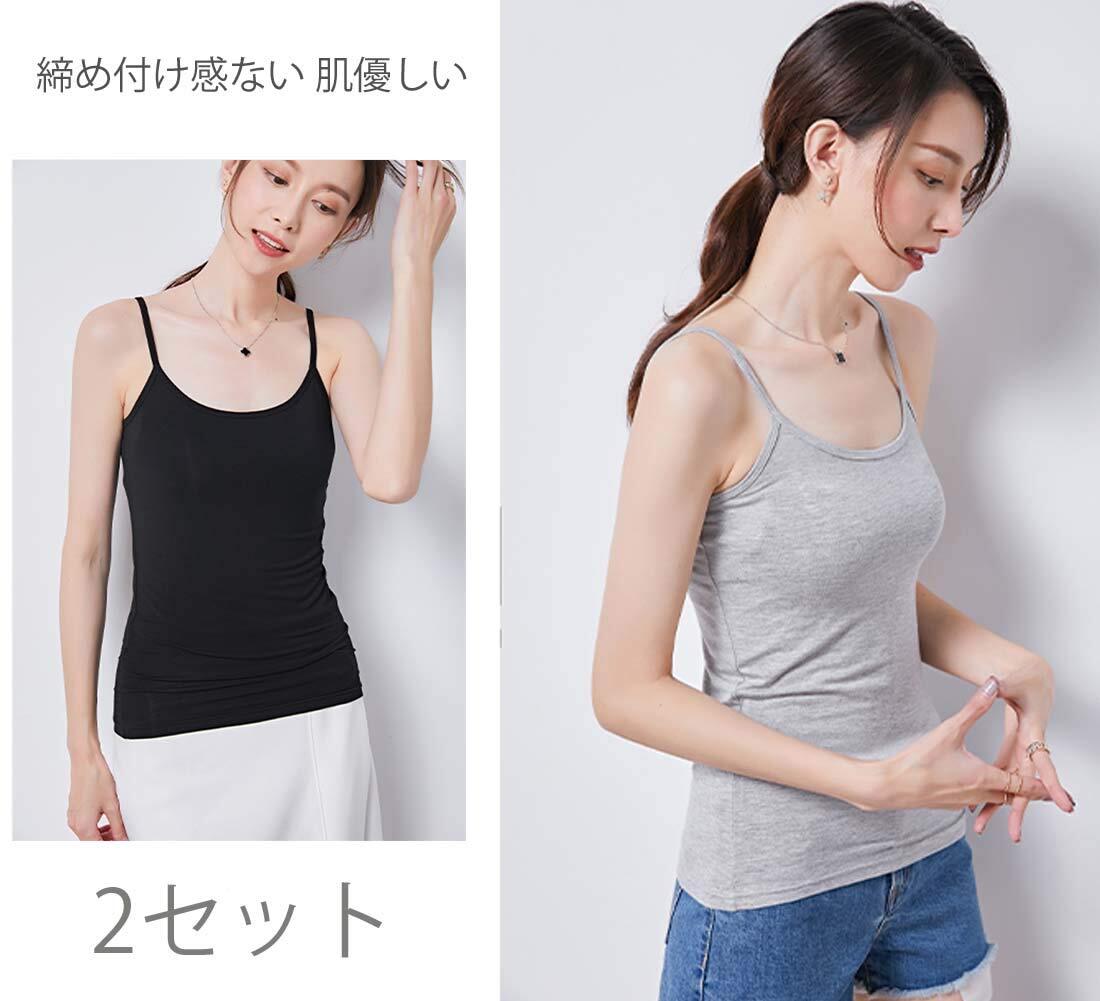 [T WILKER] カップ付きキャミソール 2セット 冷感 さらさら生地 インナー トップス 肩紐調節可 吸汗 肌優しい ブラトップ