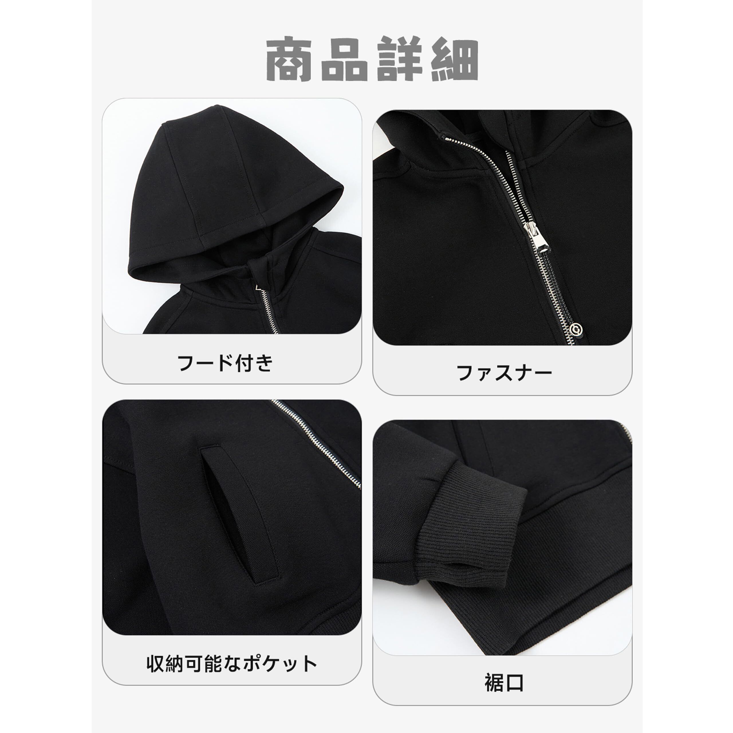【デザイン】フード付きなトレーナー、短タイプ、ゆったりスタイル、両サイドに収納可能なポケット付き、ファスナータイプ、スラックス感覚も兼ね添えておりデザインもオシャレです。