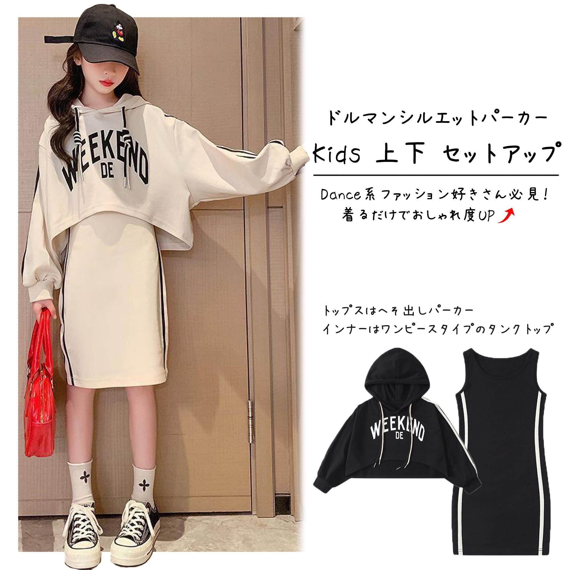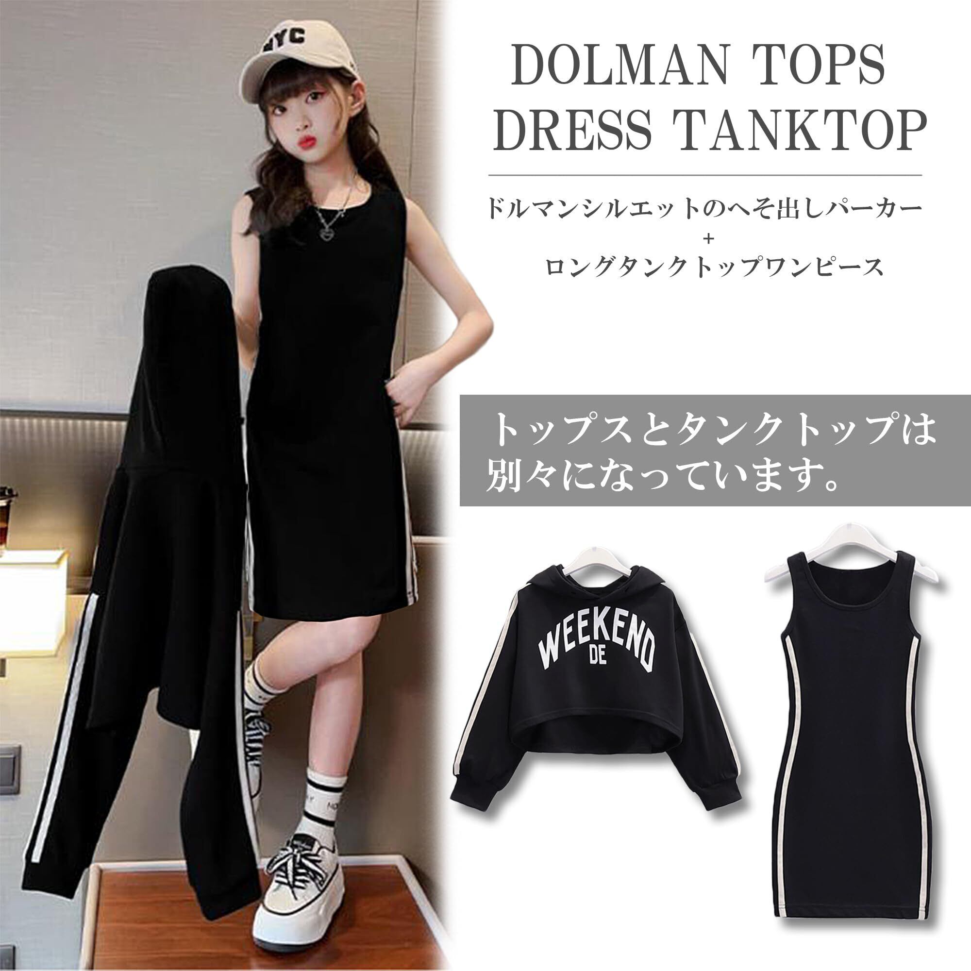 おしゃれな女の子にぴったり! 韓国のトレンドを先取りした、へそ出しパーカーとロングタンクトップのセットアップが登場!