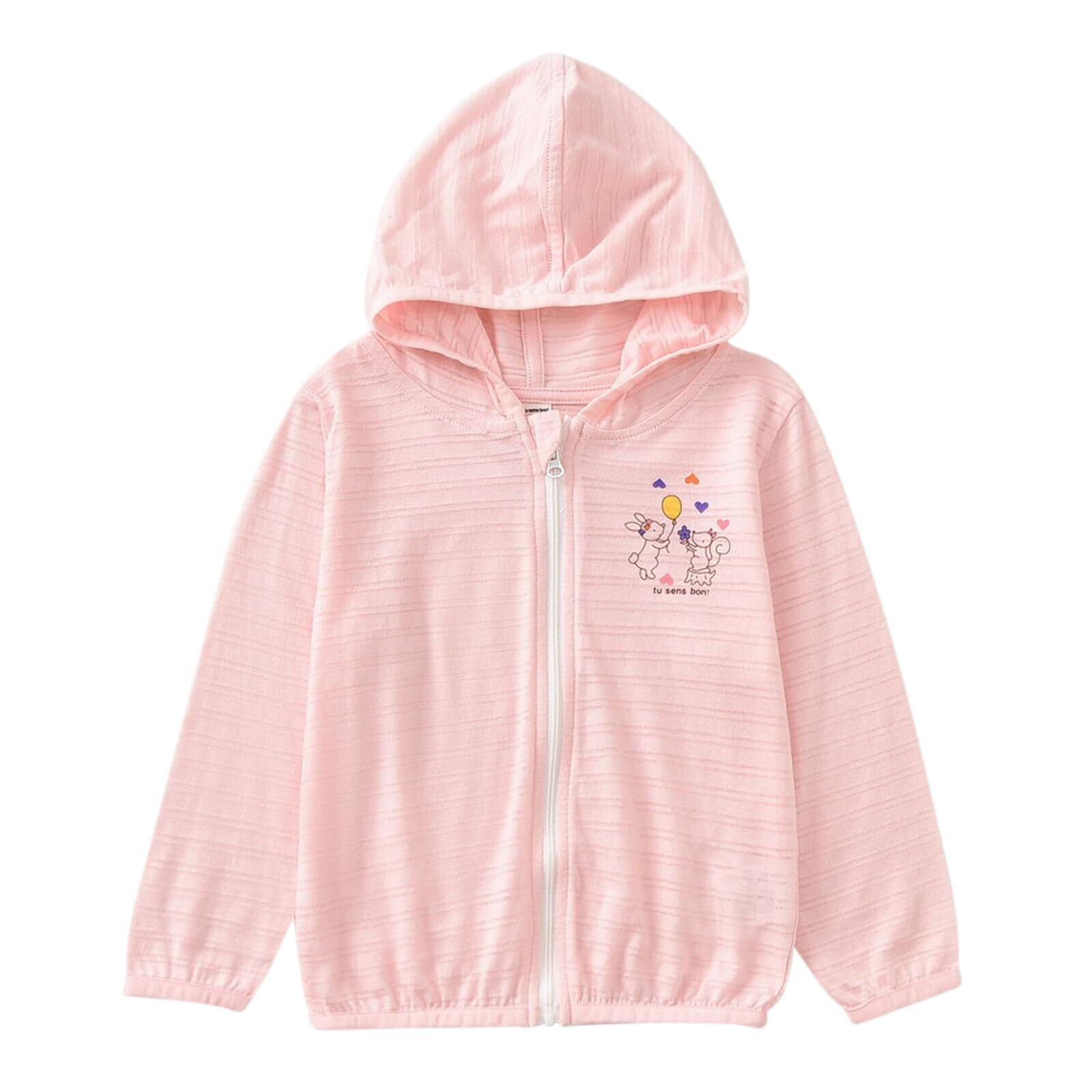 [POBIDOBY] 子供用日焼け止め服 薄手 春夏 UVカット 冷房対策 ラッシュガード こども用 ジップアップ パーカー 女の子 紫外線防止 虫除け 軽量 可愛い 普段着 旅行 通園