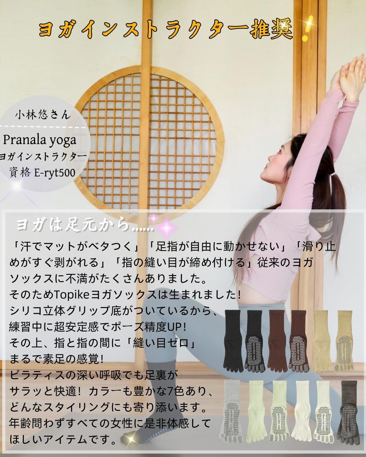 [TOPIKE] ピラティス 靴下ヨガソックス【インストラクター推薦】 5本指 滑り止め ソックス 綿 保温 防寒対策 抗菌消臭 ヨガ 靴下 7色 22.5cm~25cm スポーツウェア トレーニング スポーツ