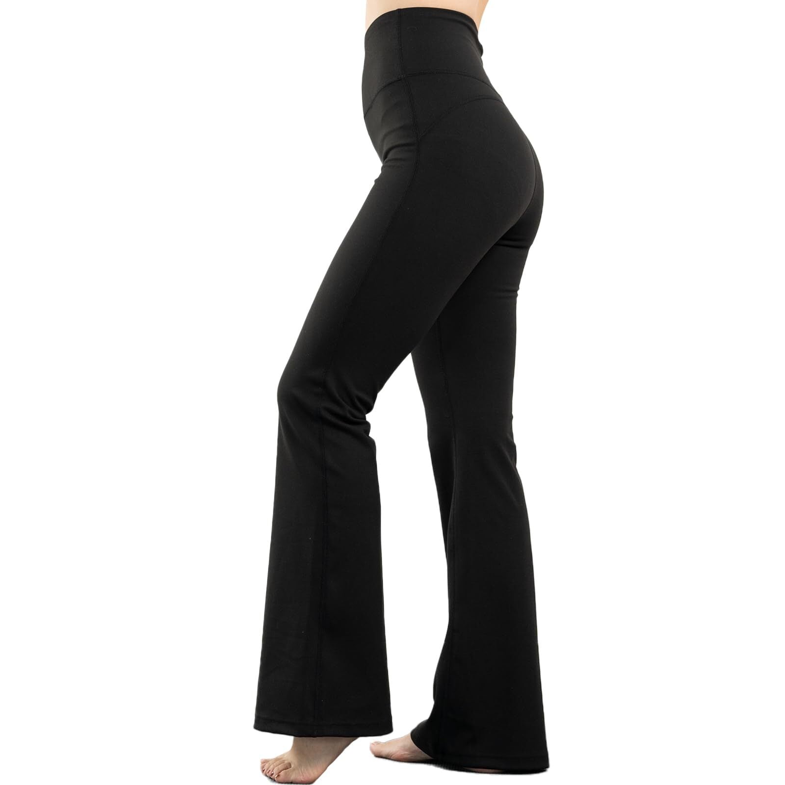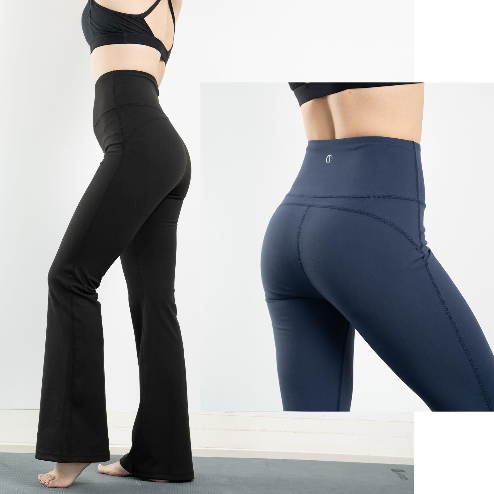 【フレアレギンス】膝から緩やかに広がるフレアカットのスラッとしたシルエットでスタイルを美しく見せます。誰でも美しく着こなすことができるヨガパンツです。しなやかで伸縮性に優れ軽量なので様々なポーズや動きにも対応できます。