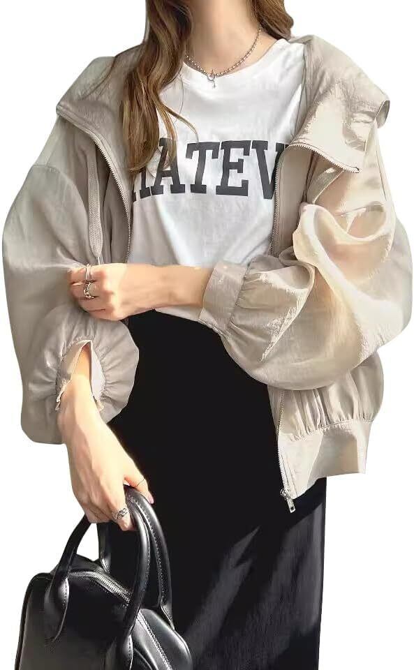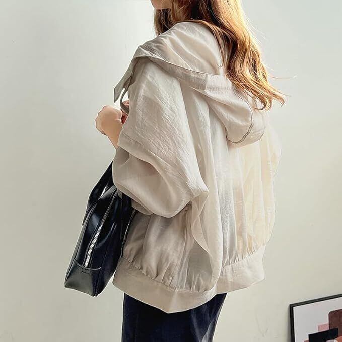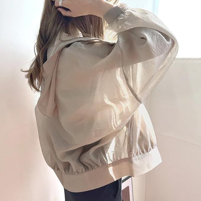 UVカットパーカー かわいい レディース パーカー 薄手 ライトアウター 夏 涼しい カーディガン フード トップス 長袖 夏用 羽織り 通気性 日焼け止め UV対策フリーサイズ: 胸囲122cm肩幅70cm袖丈39cm着丈69cm