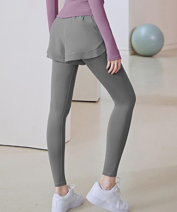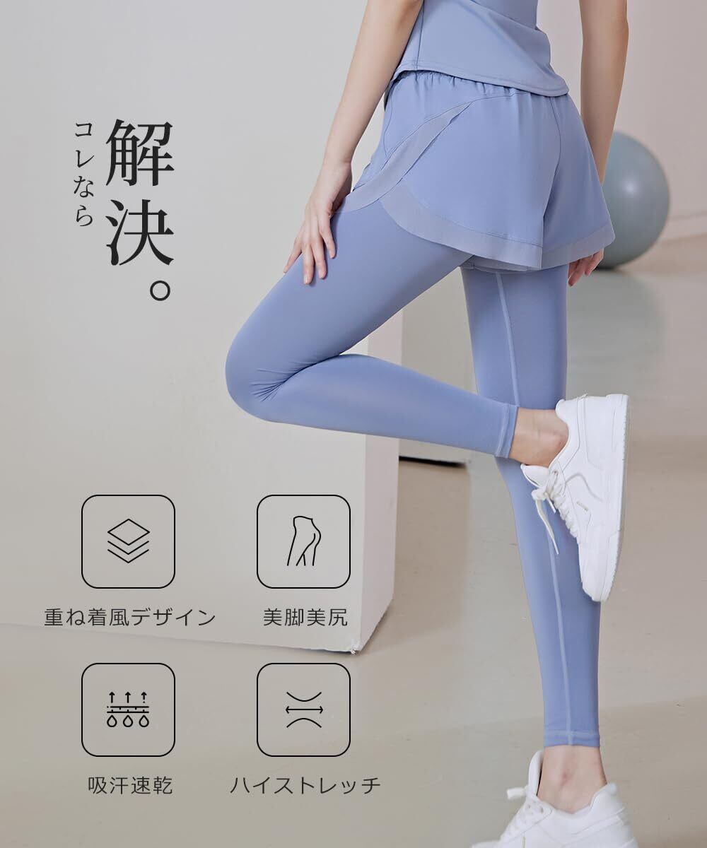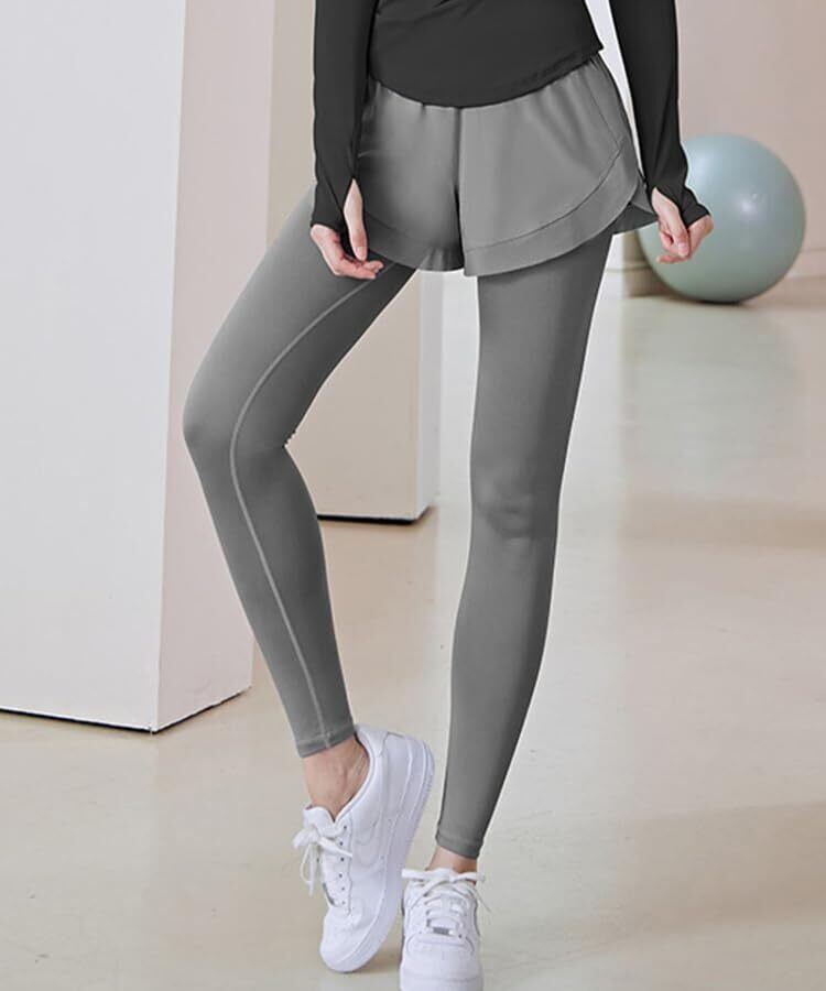 重ね着風のレイヤードデザインがかわいい、ショートパンツとレギンスのドッキングウェア! ■ウエスト位置を高く お腹周りを広範囲にサポートしながら、ウエスト位置が高くなることで脚長効果も演出。 ■ウエストゴムで優しくフィット 食い込みや締め付けが少ないのに、気になるぽっこりお腹をしっかりカバー。 ■ふんわりショートパンツ 程よくゆとりを持たせたショートパンツは気になる腰・お尻周りをさりげなくカバー。 ■身体にぴったりフィット 優れた伸縮性で身体にフィットし、様々な動きにストレスなく対応。 ■便利なポケット付き 内側にあると便利なポケット付き、トレーニング中スマホの置き場所にももう困らない。