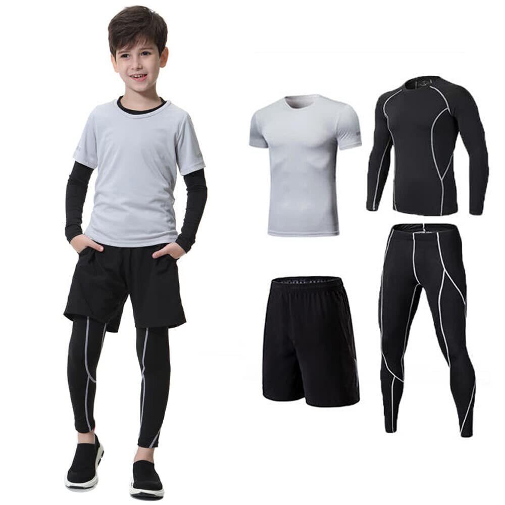 【在庫セール】[MIIFIT] 子供服スポーツウェア コンプレッションウェア キッズ 上下セット長袖シャツ 半袖シャツ ハーフパンツ タイツ 通気防臭 トレーニングウェア ランニングウェア男女兼用 春夏秋冬 | 無意味ステッカー