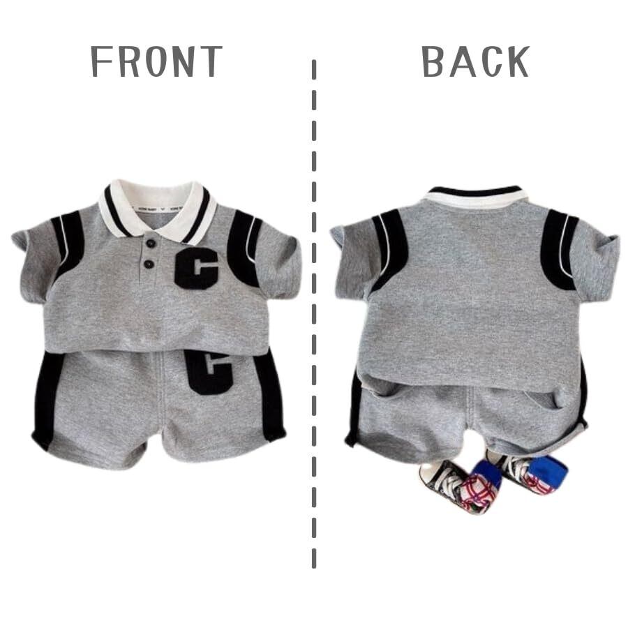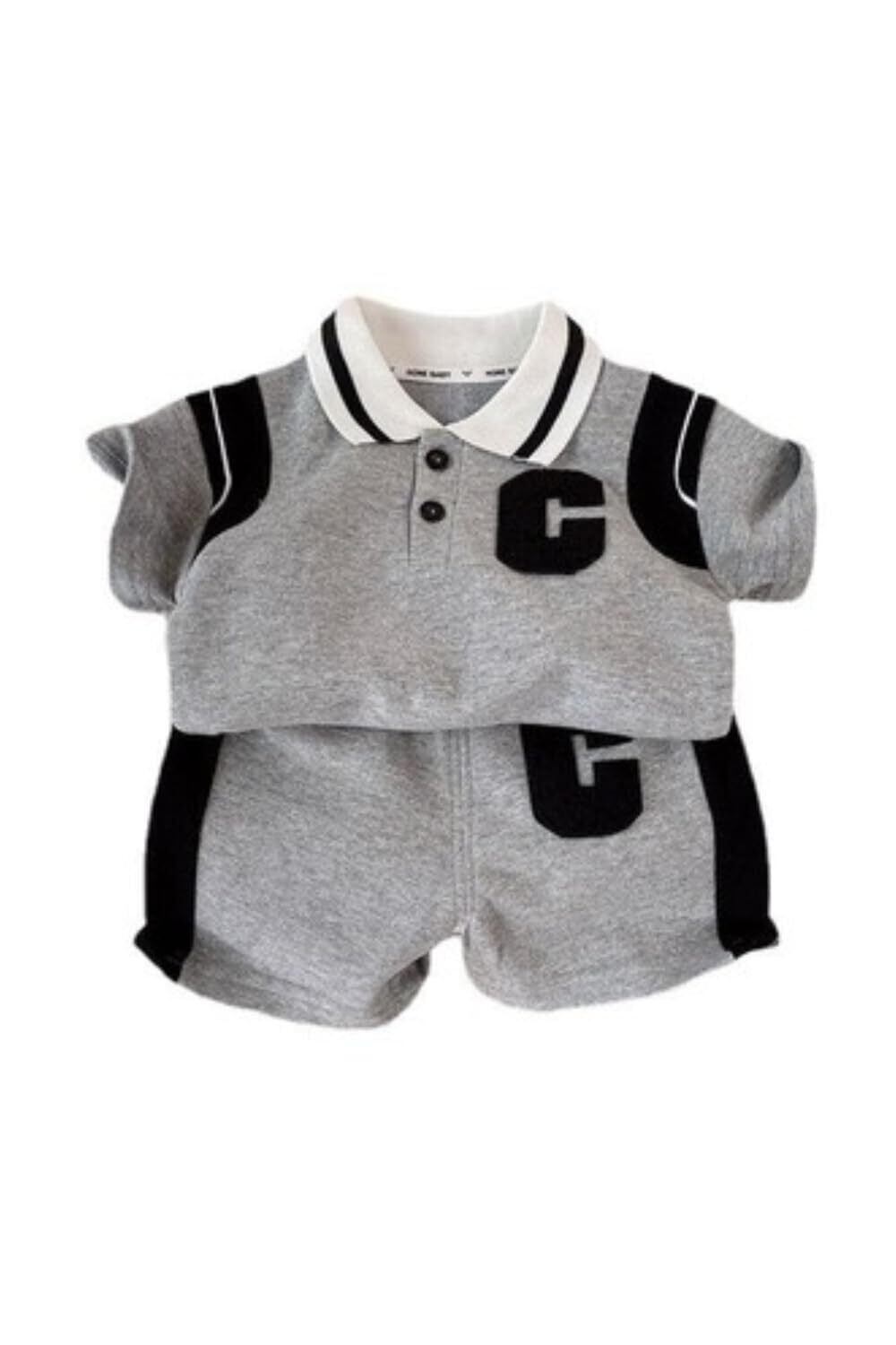 [EnDast] 2点セット ビッグロゴ 半袖 ポロシャツ 短パン スポーティ 春夏 男の子 ボーイズ キッズ かわいい 伸縮性 上下セットアップ 韓国子供服 90cm 100cm 110cm 120cm 130cm