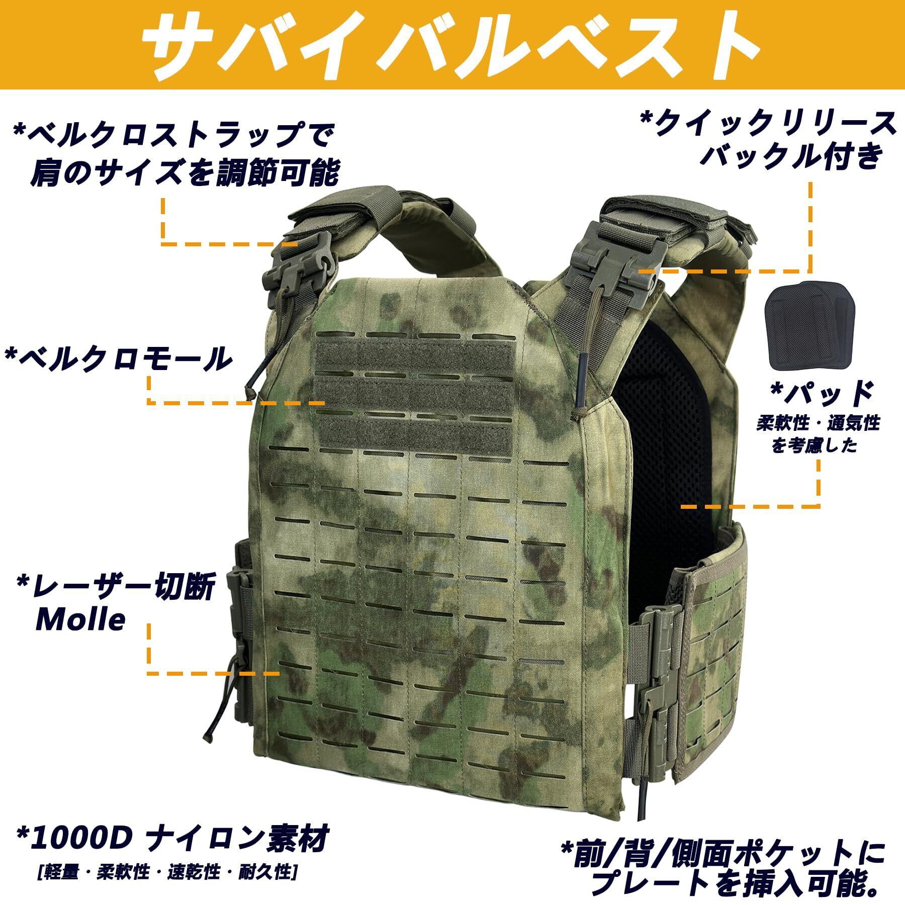 [TWINFALCONS] タクティカルベスト 軽量 プレートキャリア サバイバルベスト MOLLE モール サイズ調整可 1000Dナイロン素材 レーザー切断