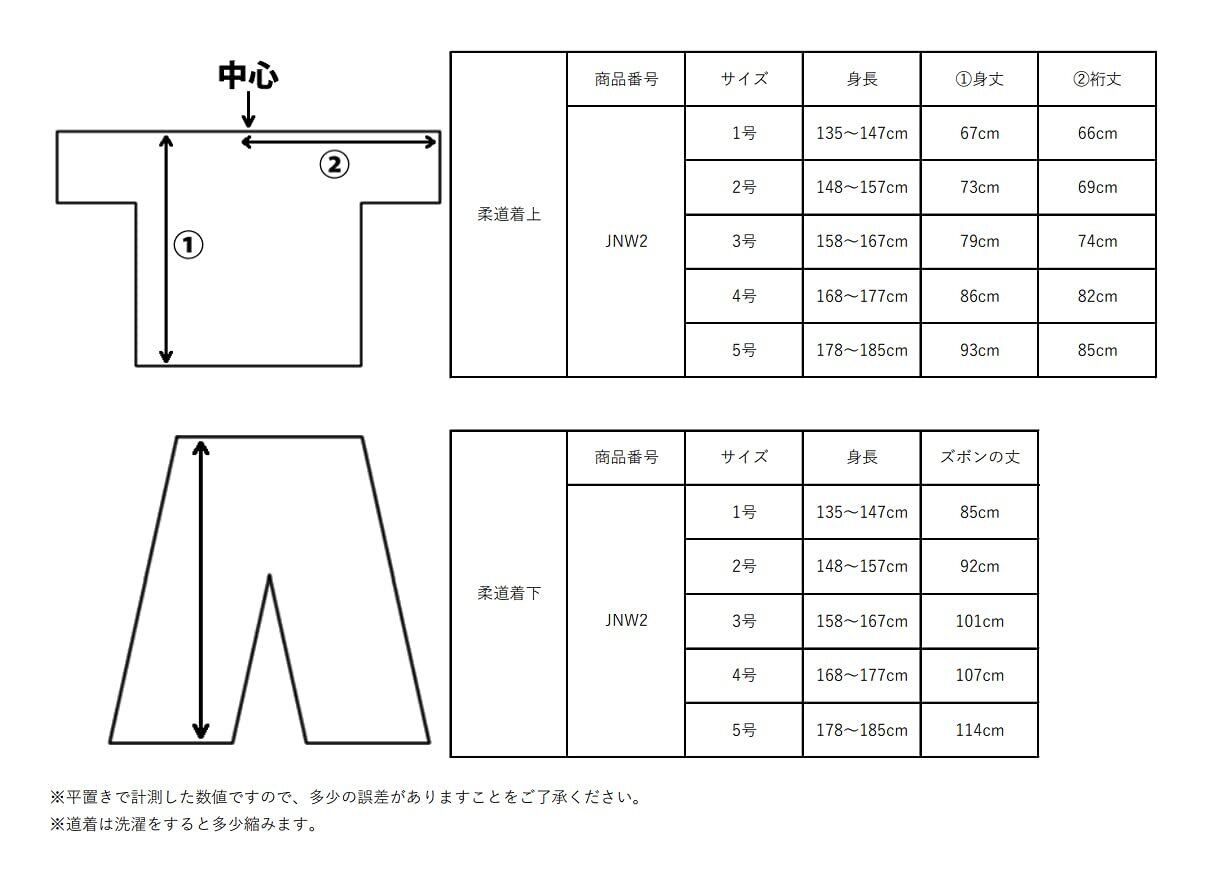 ■サイズ:1~5号 ※商品画像のサイズ表をご確認ください! ■サイズ詳細(柔道着上) 身長:1号/135-147cm、2号/148-157cm、3号/158-167cm、4号/168-177cm、5号/178-185cm 身丈①:1号/67cm、2号/73cm、3号/79cm、4号/86cm、5号/93cm 裄丈②:1号/66cm、2号/69cm、3号/74cm、4号/82cm、5号/85cm ■サイズ詳細(柔道着下) 身長:1号/135-147cm、2号/148-157cm、3号/158-167cm、4号/168-177cm、5号/178-185cm ズボンの丈:1号/85cm、2号/92cm、3号/101cm、4号/107cm、5号/114cm