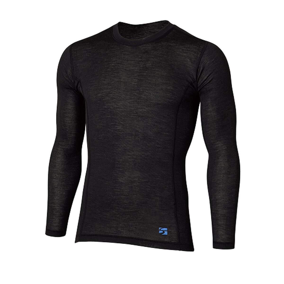 未防縮メリノウールとポリエステルのハイブリッドベースレイヤーです。