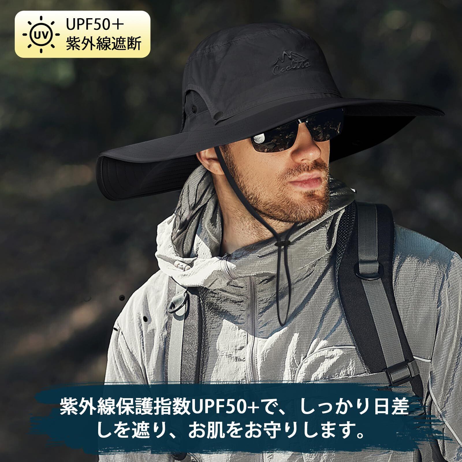[Cooltto] フィッシングハット 帽子 つば広 シェードハット メンズ メッシュ UVカット 日焼け防止 釣り 登山 アウトドア スポーツ