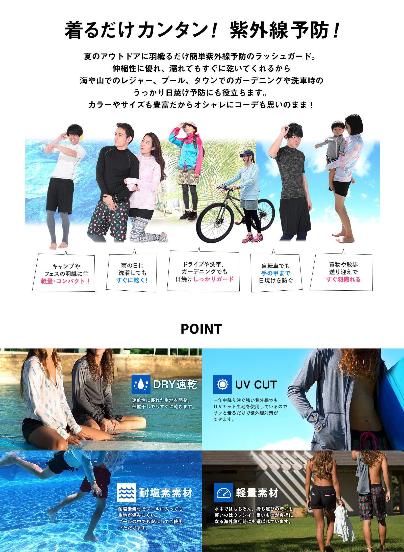 ▼速乾性 海で濡れても速乾性に優れた生地だから使いやすい。UVカットもできて便利!