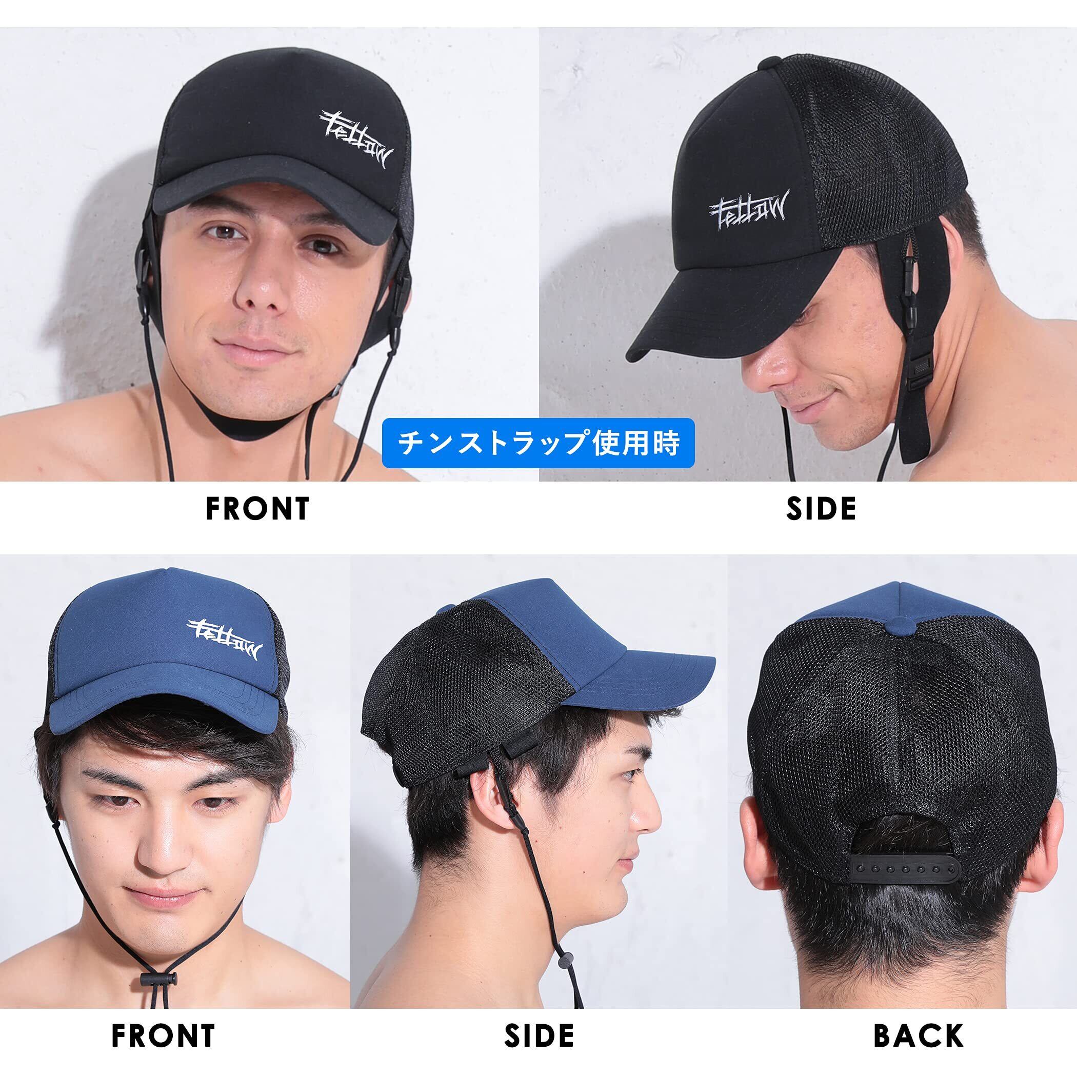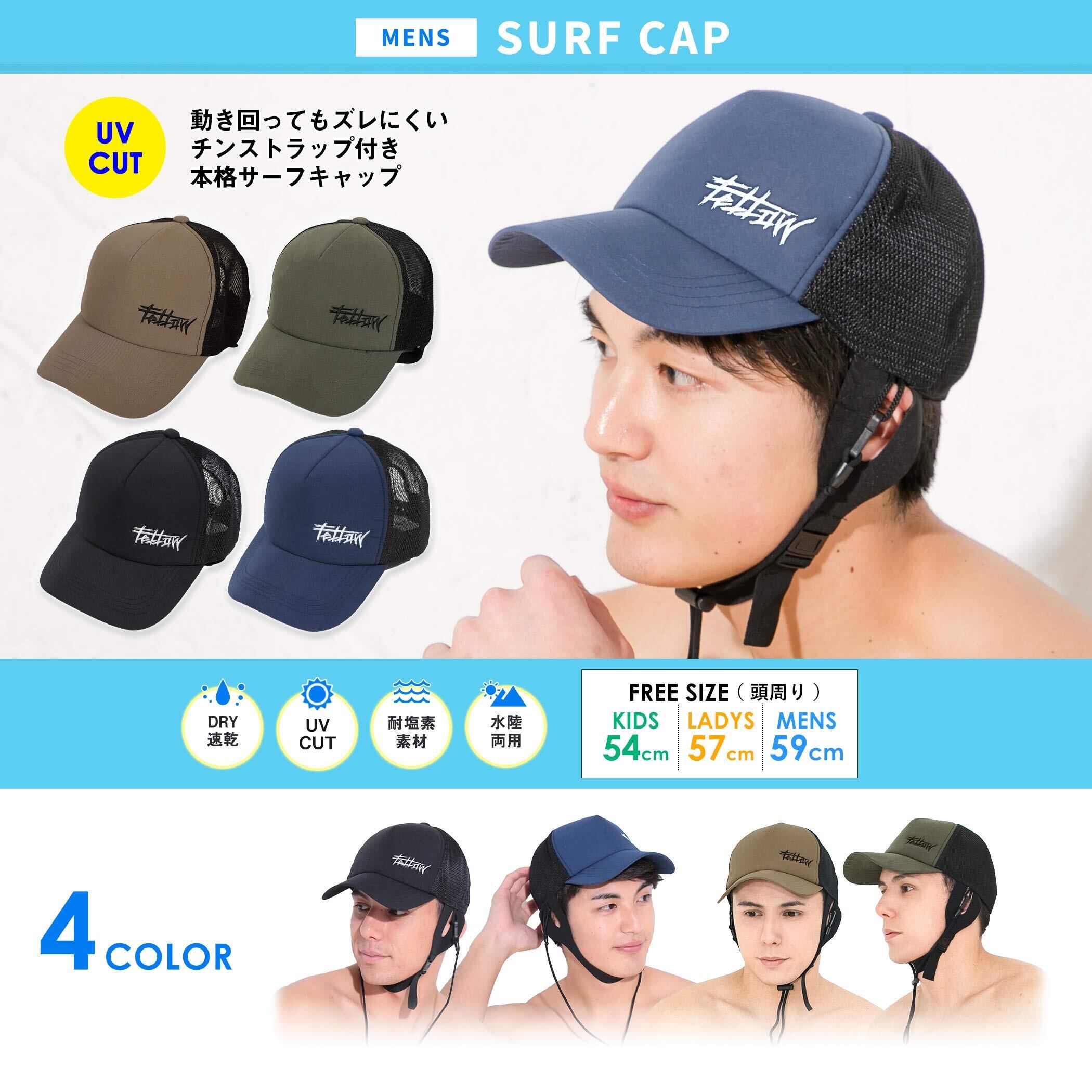 [FELLOW] フェロー サーフキャップ メンズ 59cm UV あご ストラップ 帽子 水陸両用 サーフィン フリーサイズ ビーチキャップ 日よけ 紫外線カット