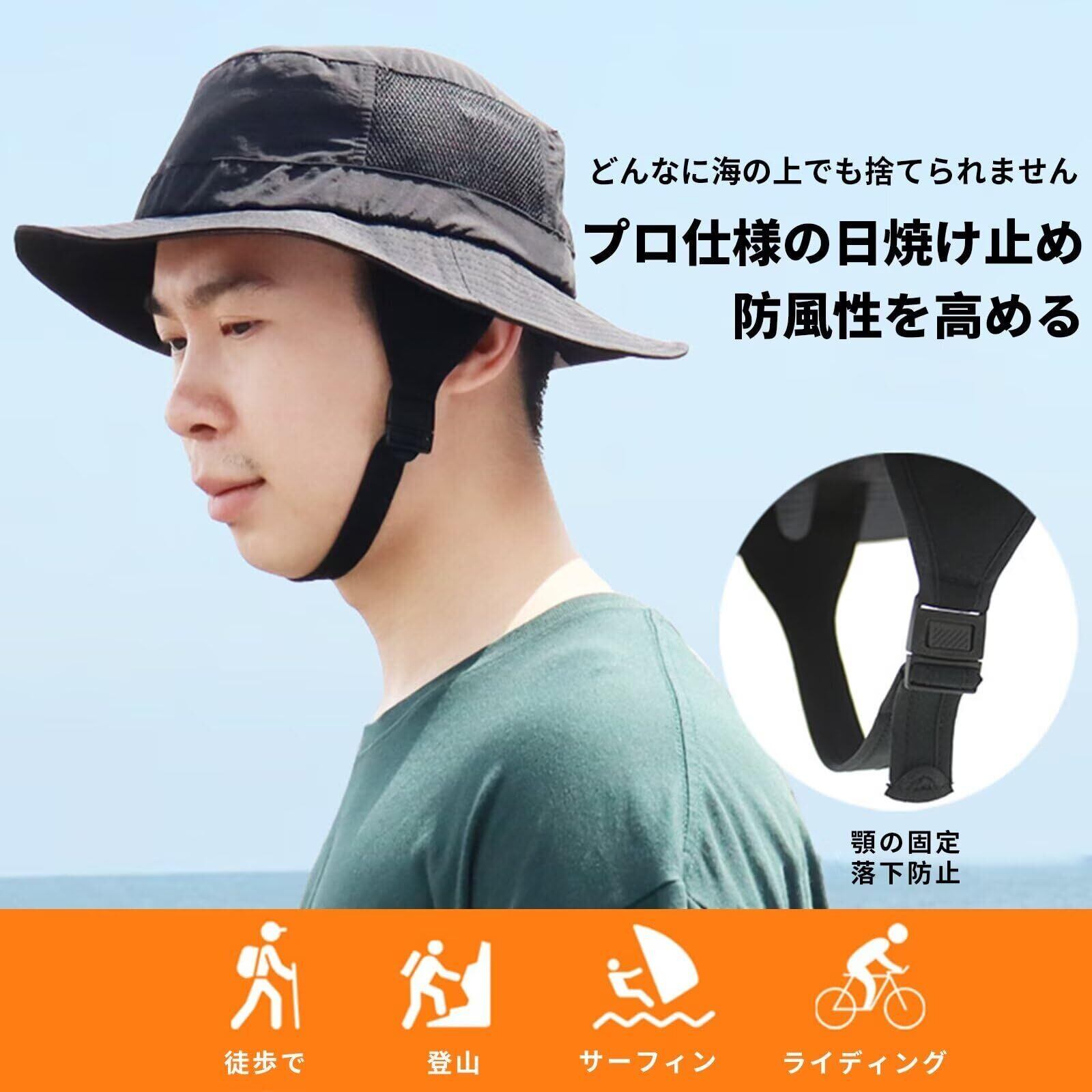 [LEZOOY] サーフキャップ 人気 サーフ UVカット帽子 つば広 UPF50+ 通気性 速乾性 あご ストラップ ビーチキャップ アウトドアスポーツ ウォータースポーツ サーフィン キャンプ ランニング 釣り自転車 56~60cm
