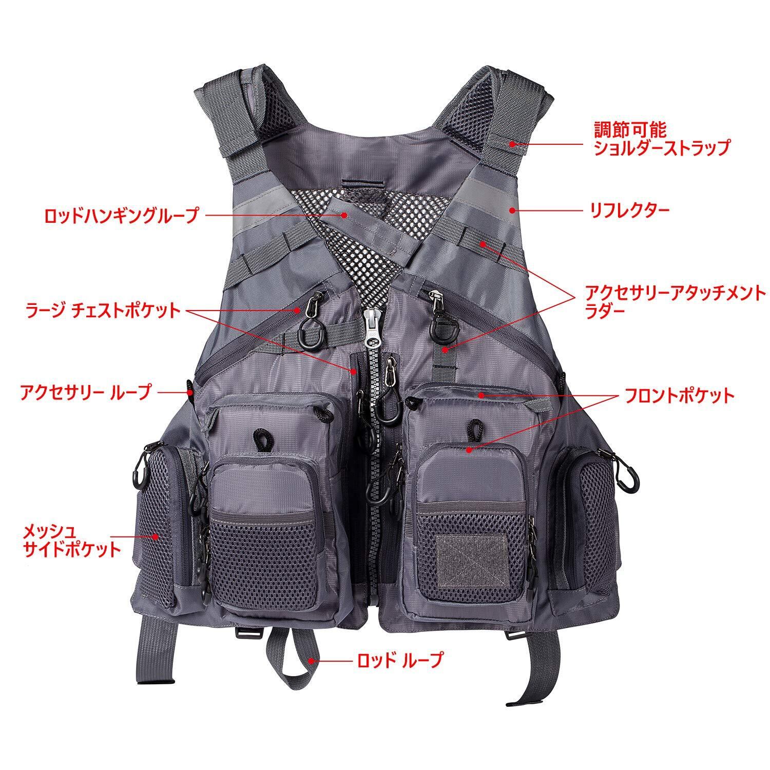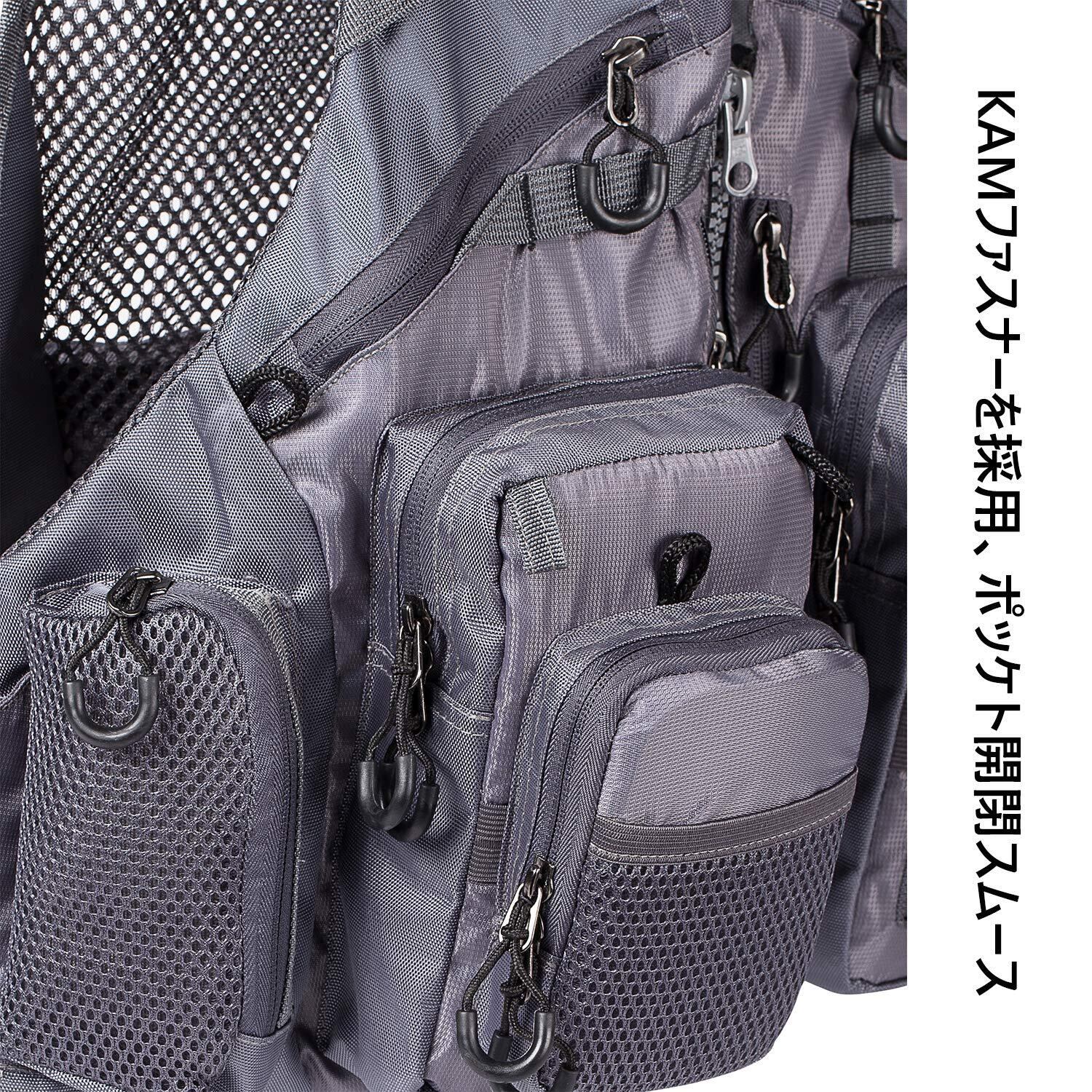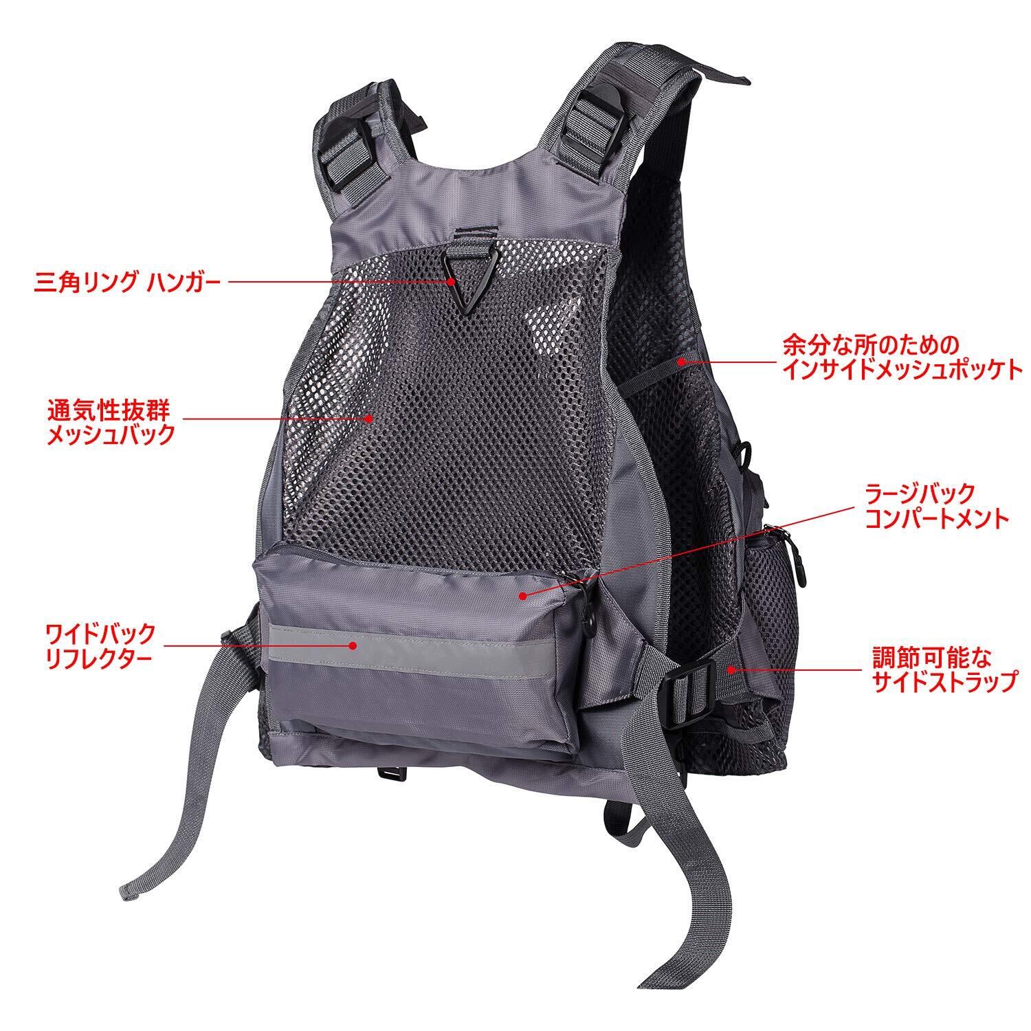 「√軽い・便利性」:ベストの自重は約0.55kgです。肩部分に分厚いクッション材入り、使用時重さを緩和してくれます、磯釣り、ルアーフィッシング、フライフィシング、海釣りなどのアウトドアスポーツに最適です。
