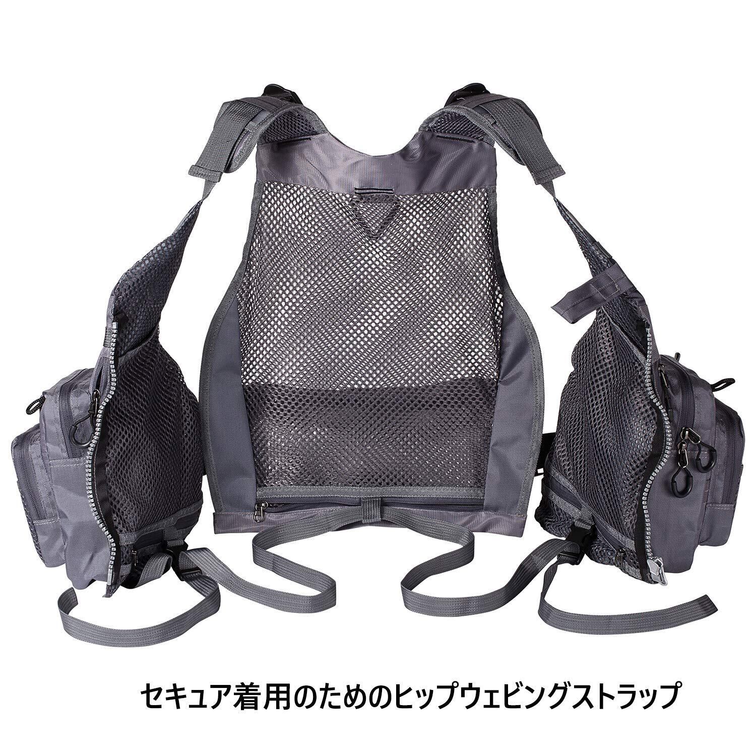 Bassdash(バスダッシュ) フィッシングベスト 釣り メッシュ アウトドア トップス 多機能ベスト 男女兼用 フリーサイズ