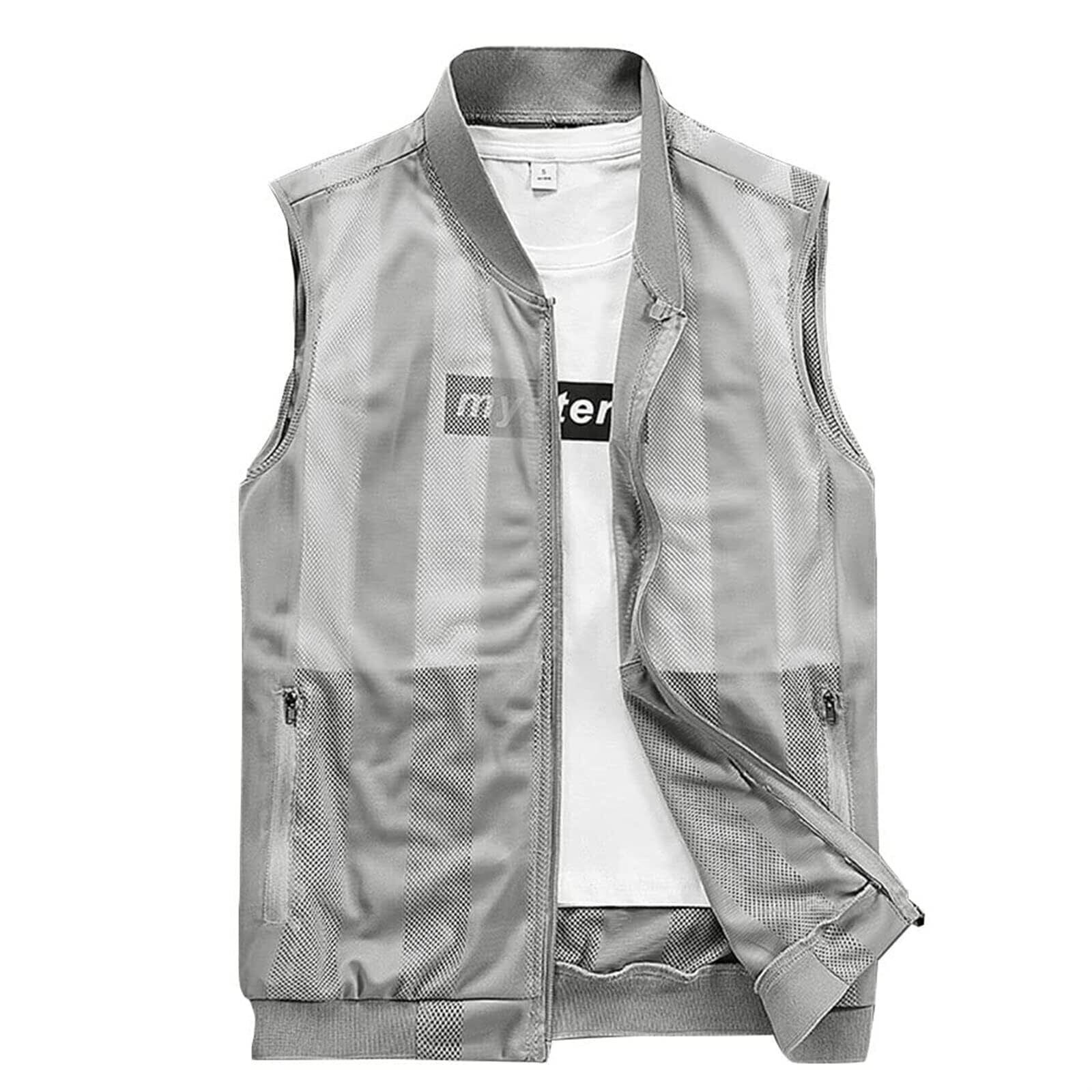 【在庫処分】[Zeroire] メンズ軽量サマーベスト メッシュベスト アウトドア機能ベスト 夏用ベストメンズ 軽量 通気性 多くのポケット付き釣りベスト ベスト ノースリーブジャケット フィッシングベスト ナイロンワークベスト メッシュ生地 キルティングベスト | 無意味ステッカー