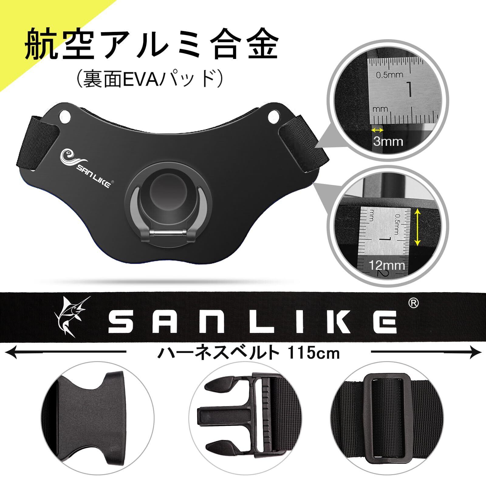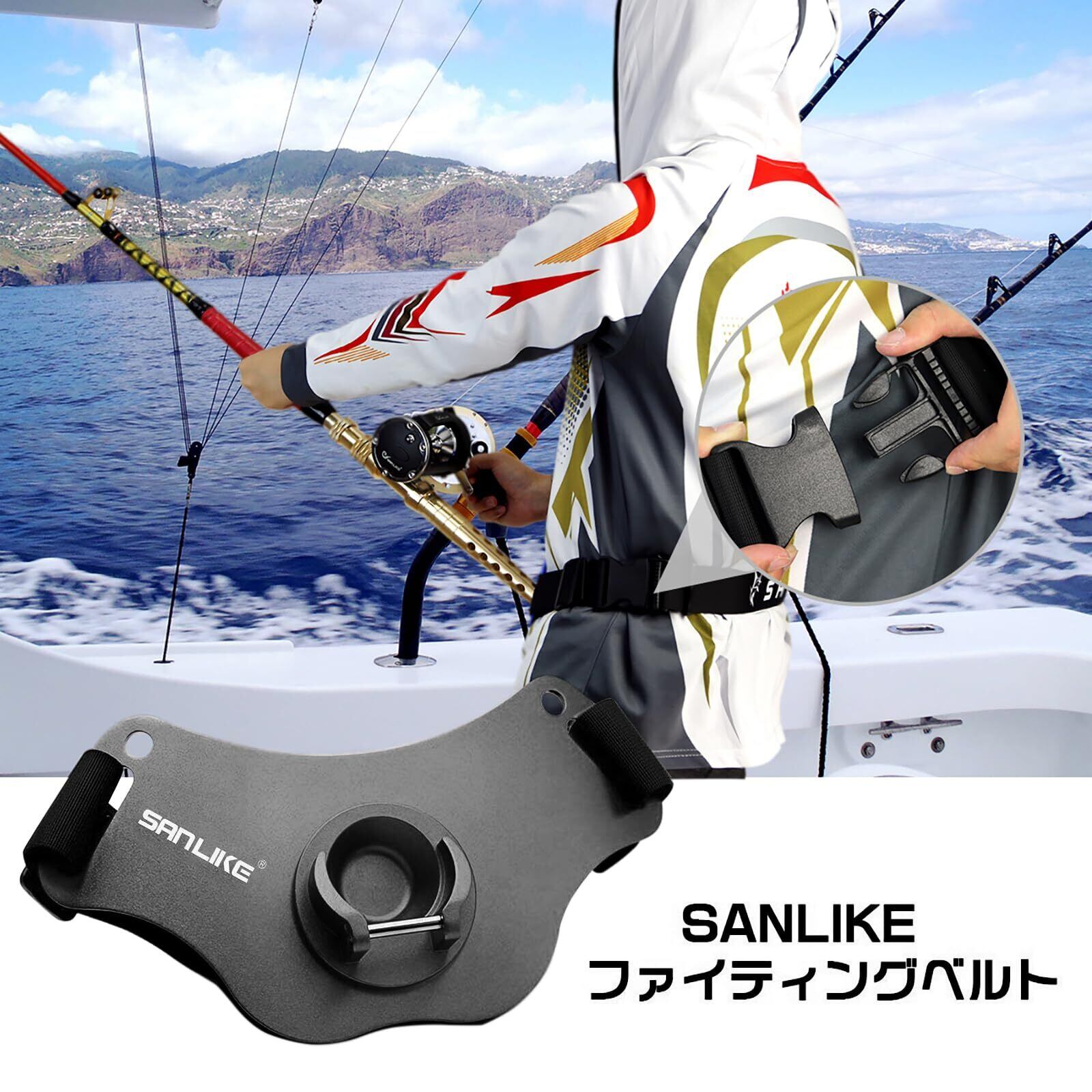 SANLIKE ギンバル ファイティングベルト海釣りファイティングベルト海釣り ライトメタル ベルトウエストバンド ロッドホルダー アルミ合金 軽量 ベルト調節可 GT 大型魚釣りツール