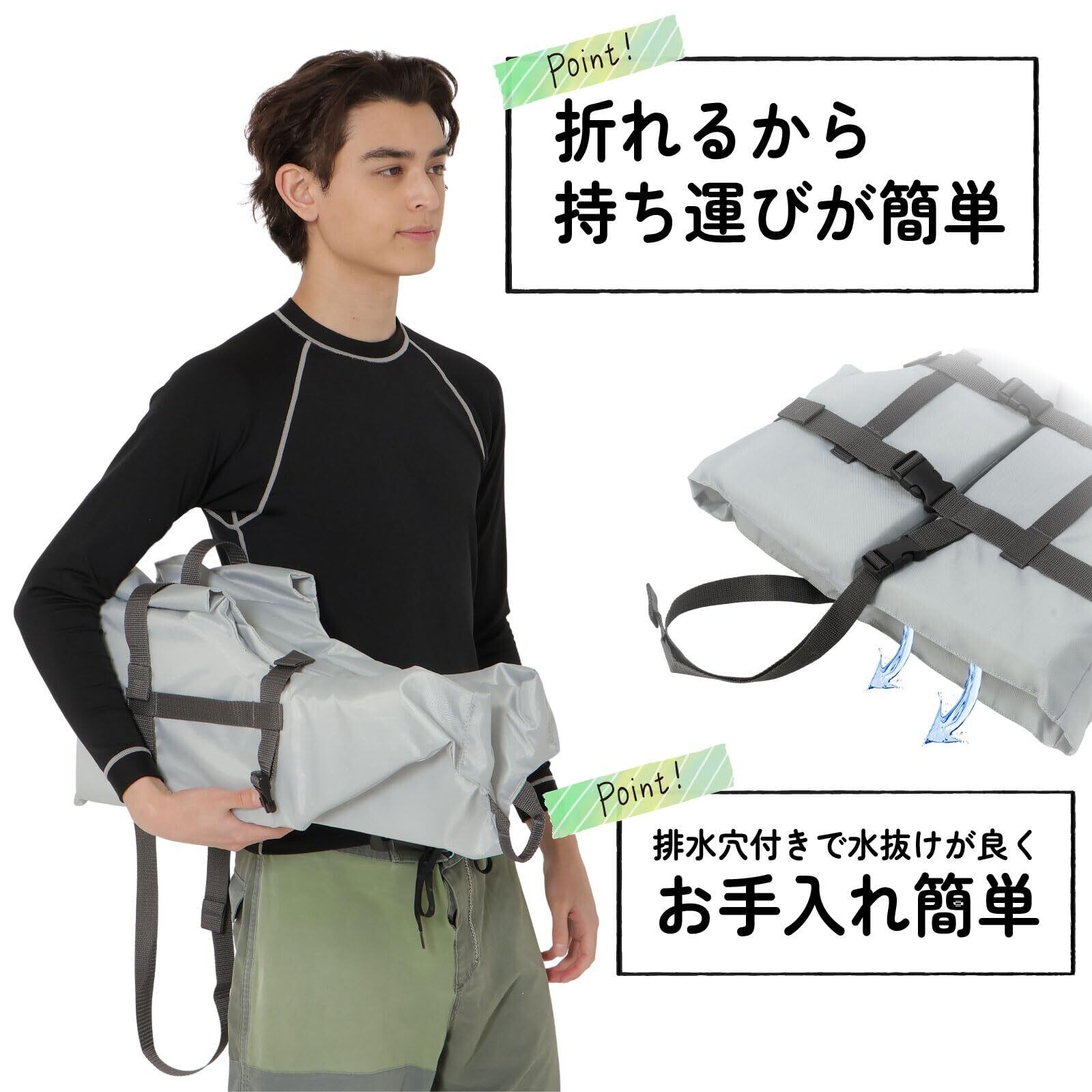 【持ち運びに便利な二つ折り収納タイプ】シュノーケリングベスト、あったらいいけど持ち運びに大きすぎる…と思っている方も多いと思います。このREEF TOURER(リーフツアラー)のシュノーケリングベストは縦に二つ折りが可能!持ち運び用のバッグやキャリーに入れやすくなっています。