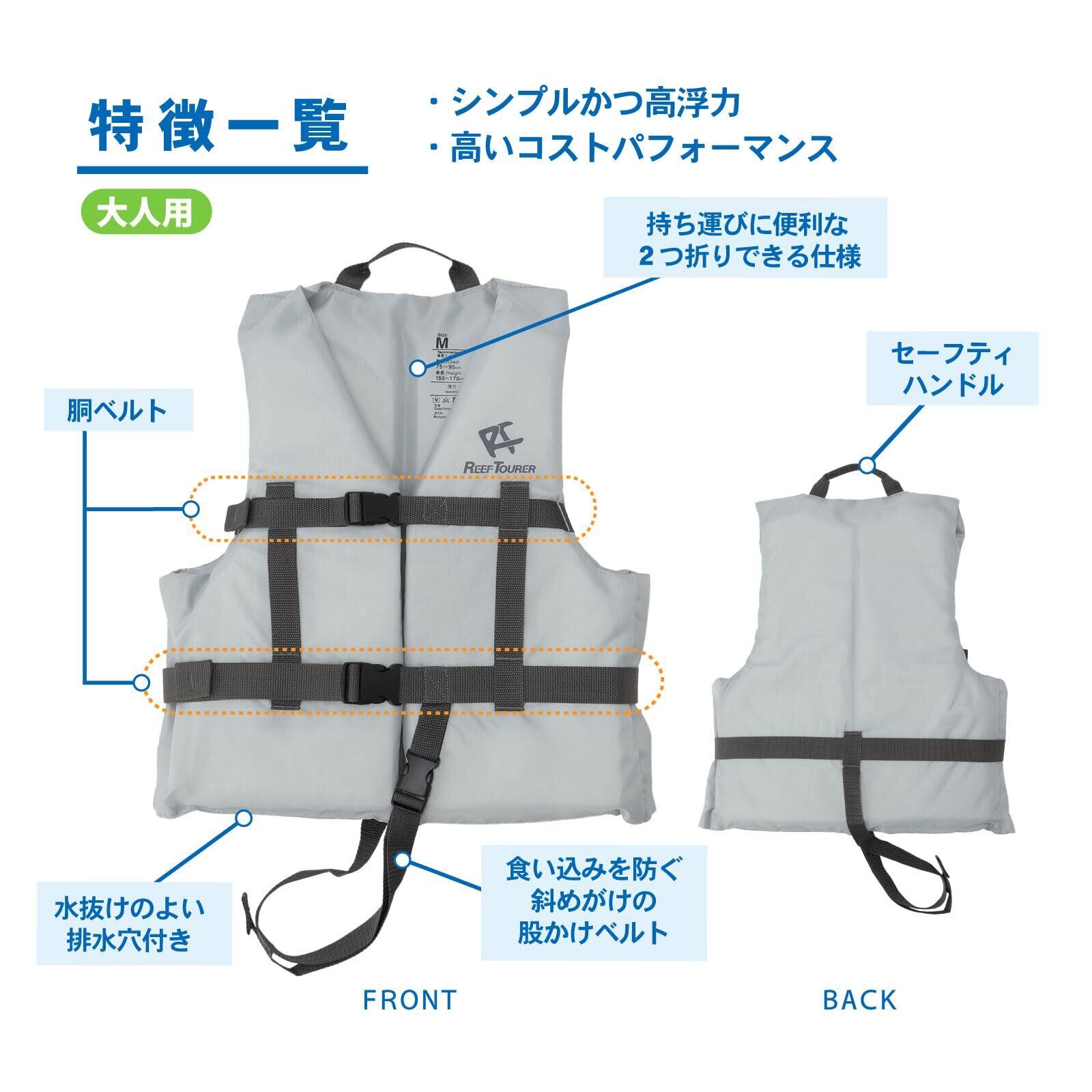 リーフツアラー(REEFTOURER) しっかり浮力で安心 股ベルト付 シュノーケリングベスト 【大人用/子ども用】 【S/M/Lサイズ】 RA8002