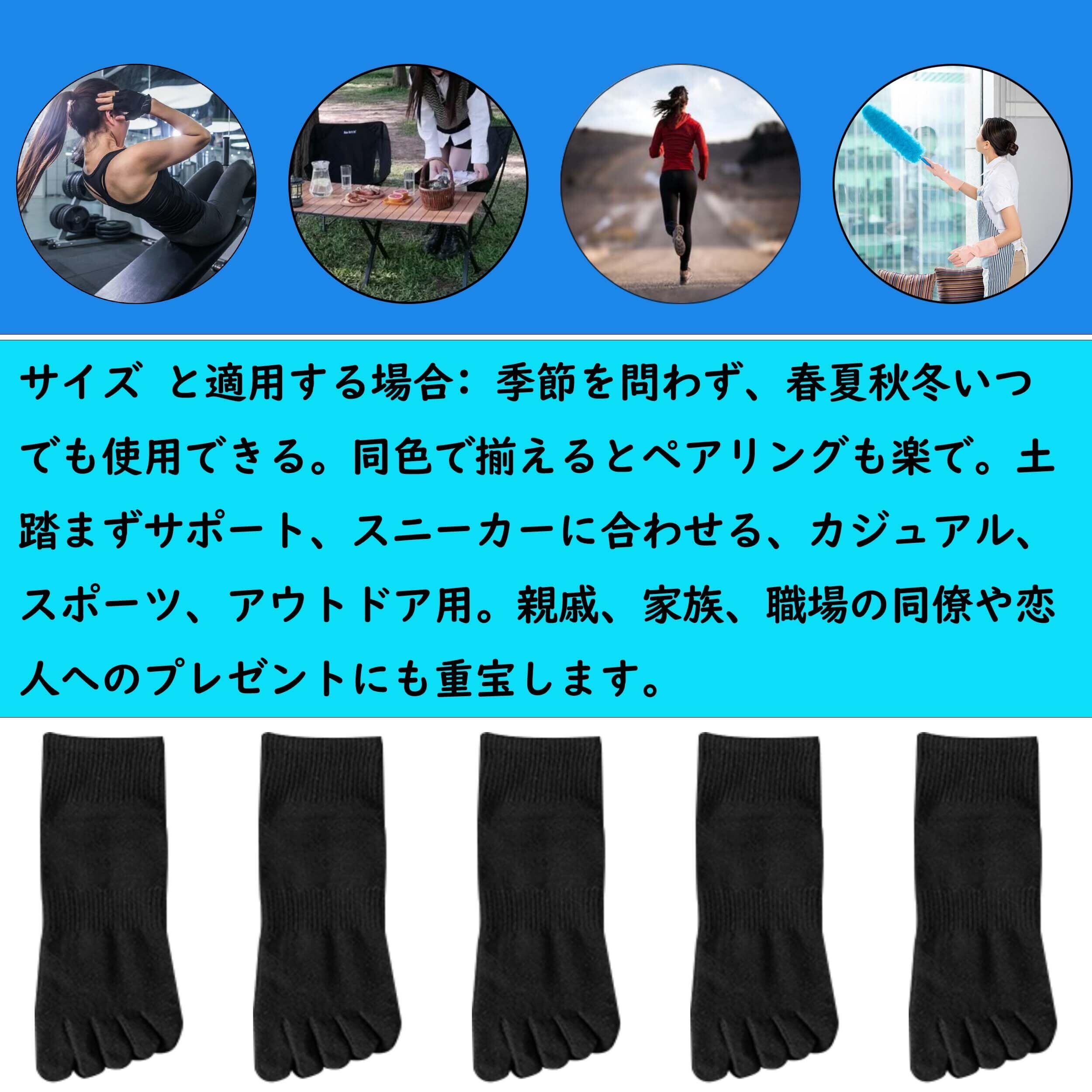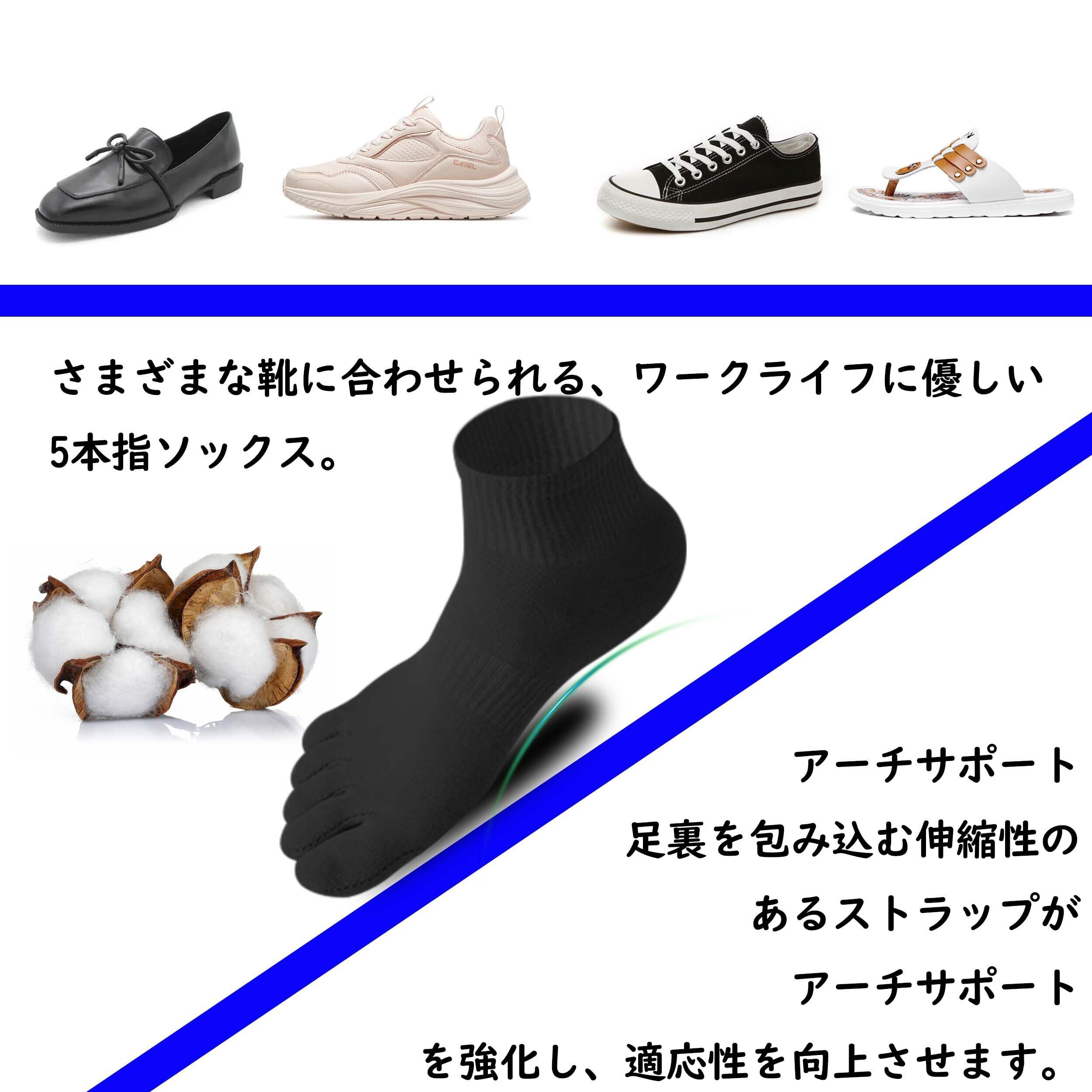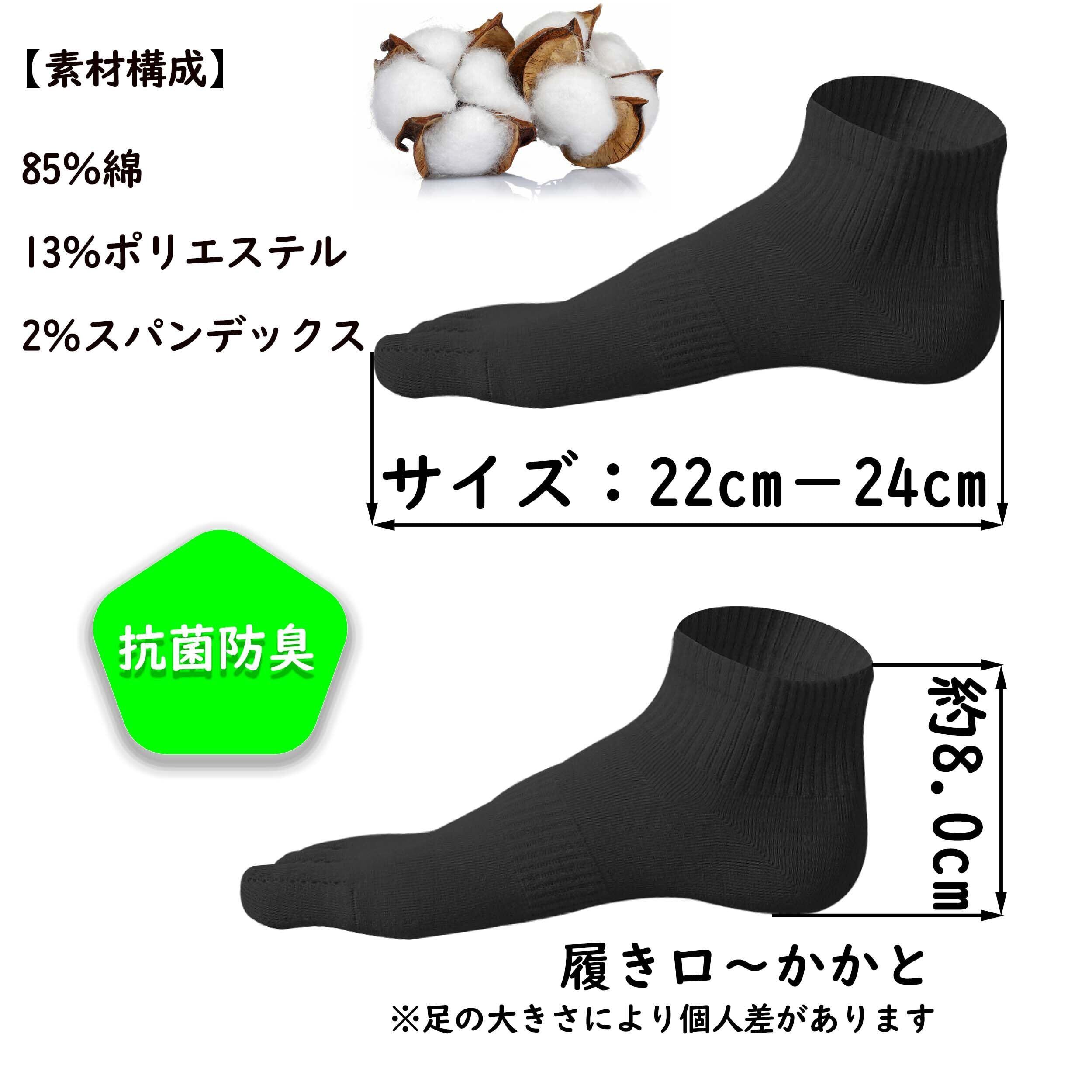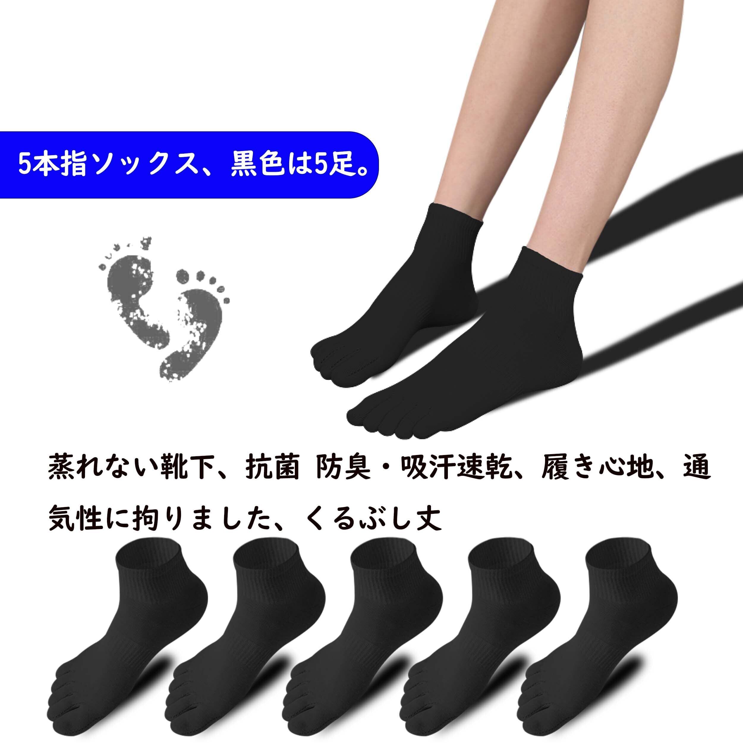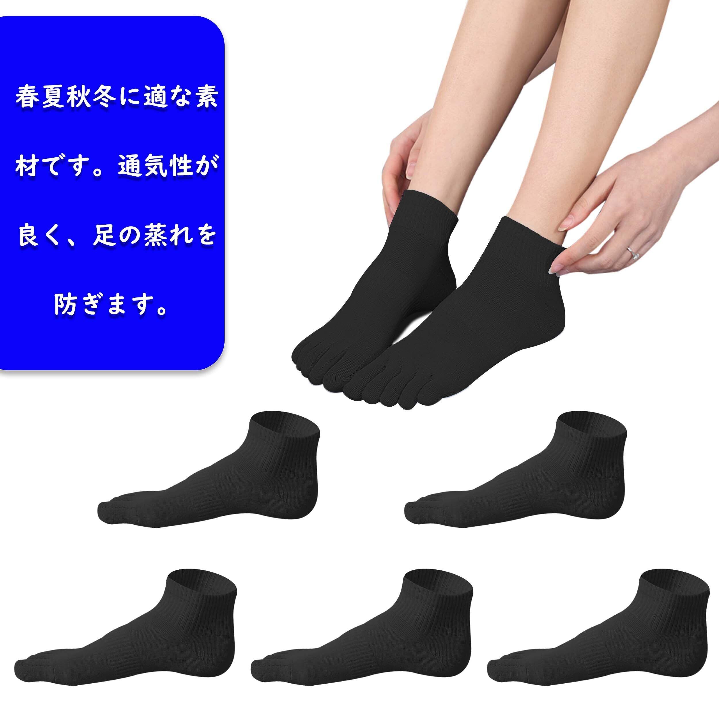 [RJKKJDS] 5本指ソックス レディース 五本指ソックス くるぶし丈 クルー丈 綿 5本指 靴下 通気 頑丈 5足セット 22cm-24cm