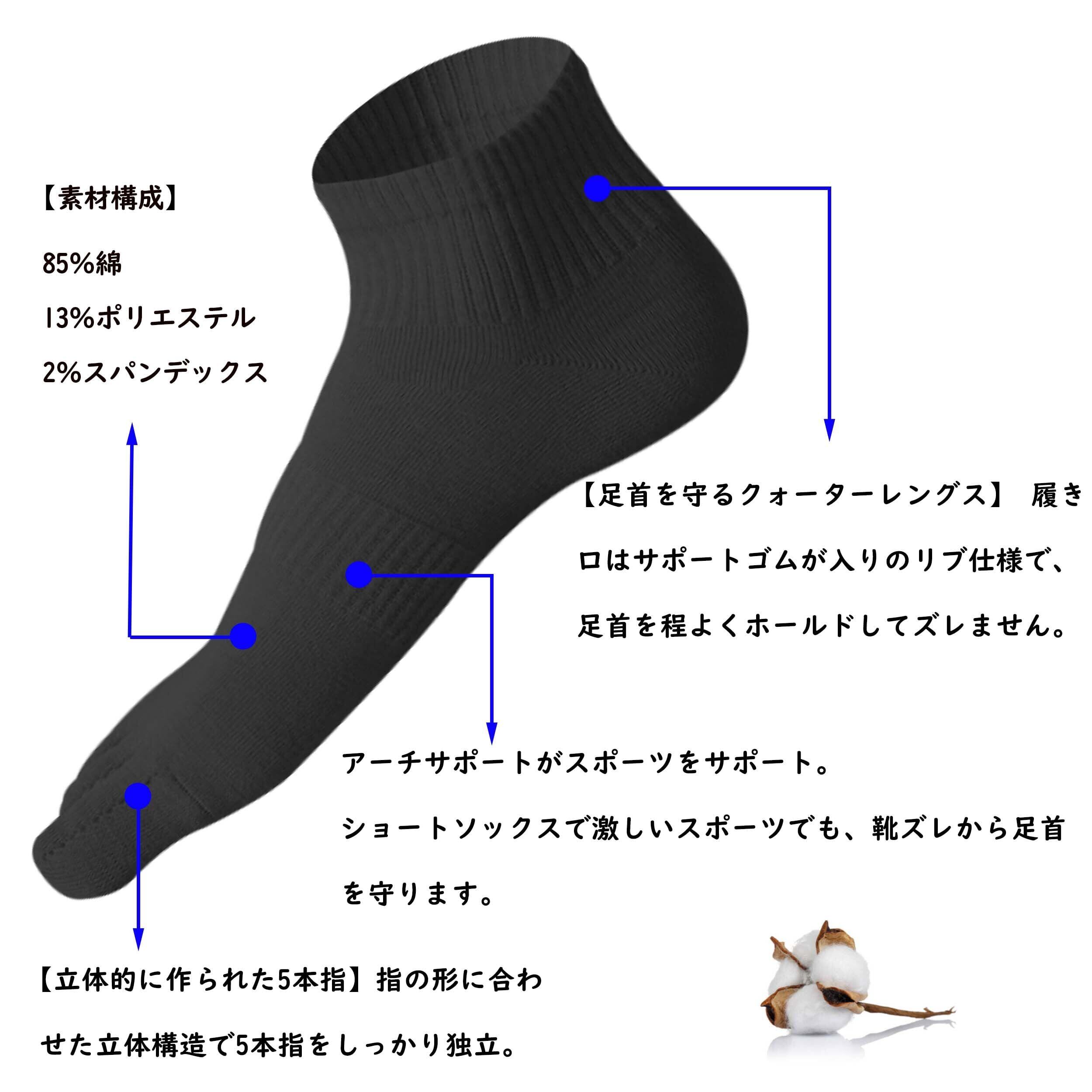 【優れたデザイン】指先立体設計で親指から小指まで、指の側面に編み込み状の空気穴、汗ムレ対策、通気、耐久、破れにくい、足快適な履き心地を維持することができます。