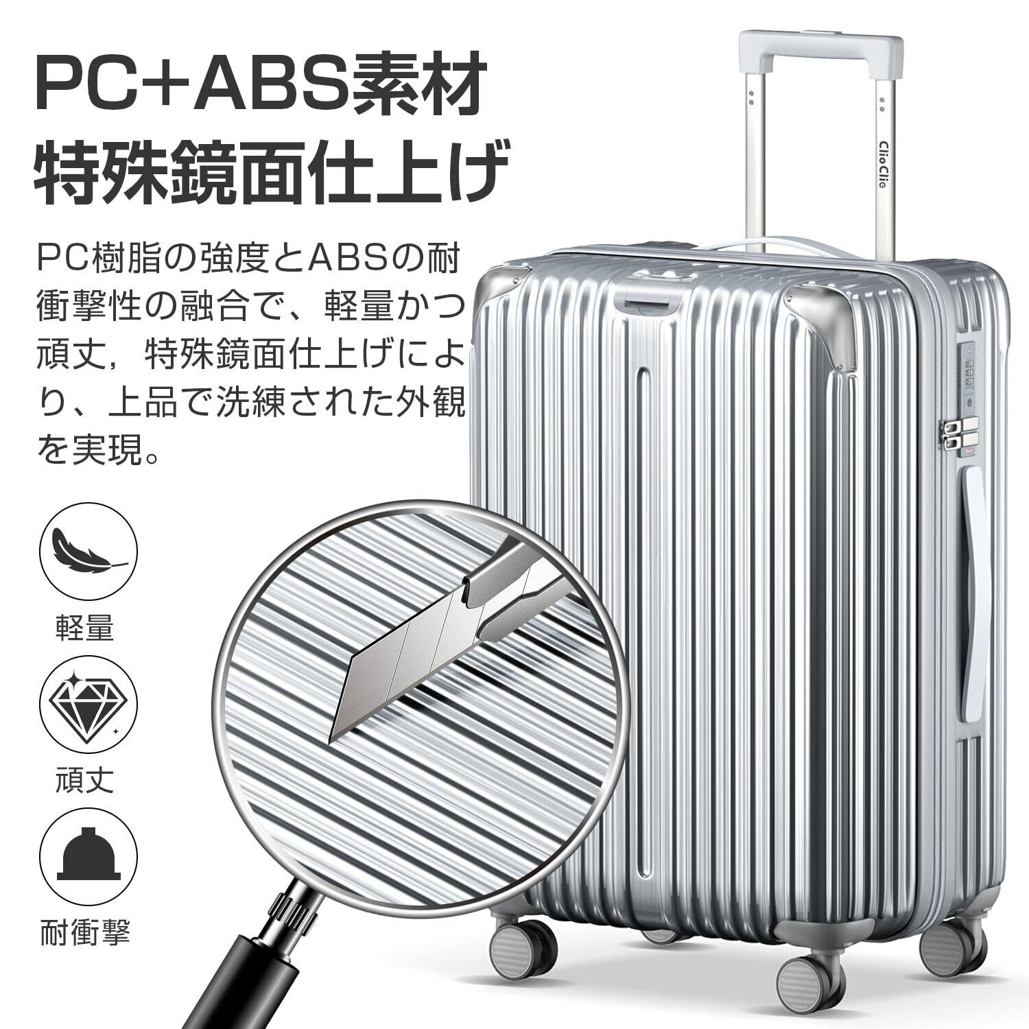 [ClioClio] スーツケース キャリーケース キャリーバッグ 拡張機能付 超軽量 静音 鏡面加工 【360度回転 & 取り外す可能】 ABS+PC 耐衝撃 防盗ファスナー TSAローク搭載 旅行 ビジネス 出張 (シルバー, Sサイズ/機内持込可能(1~3泊/40L))