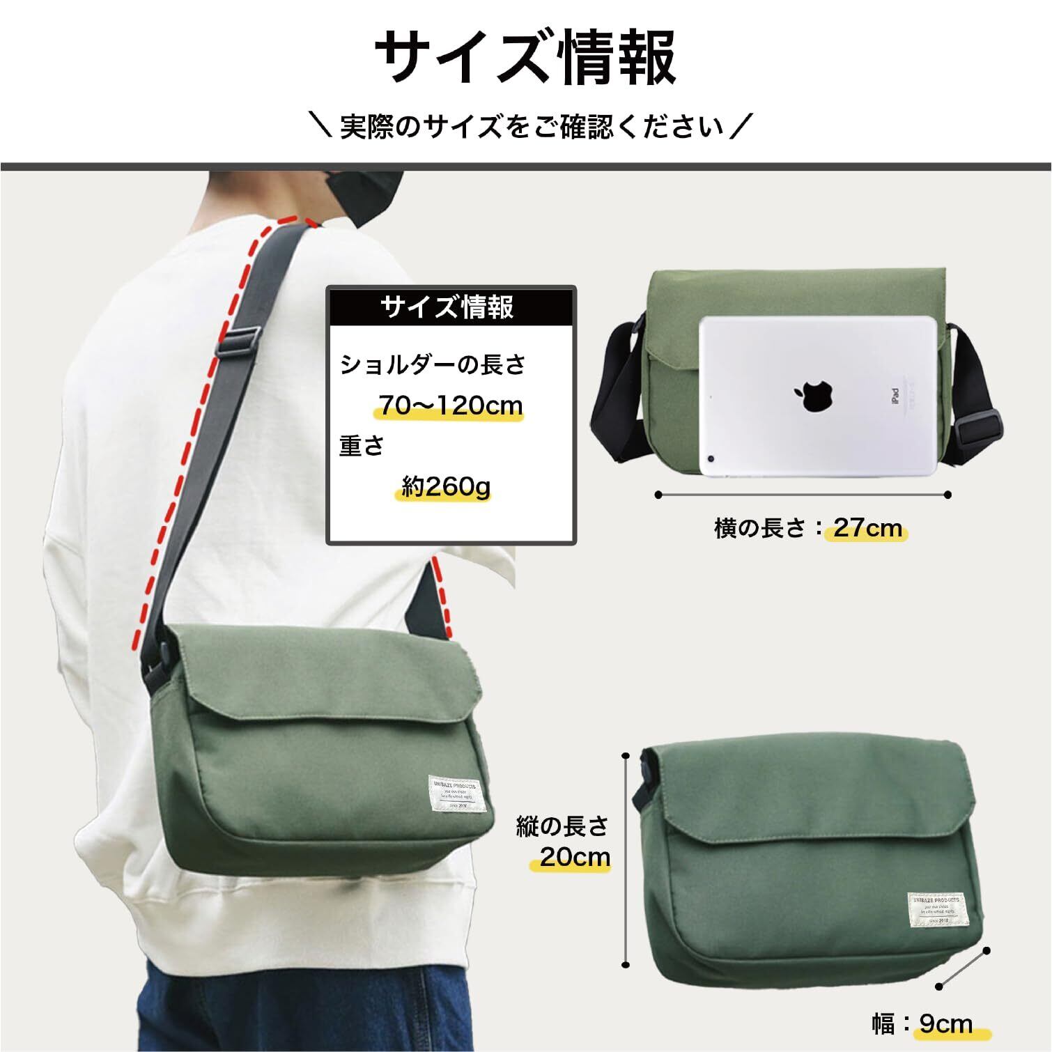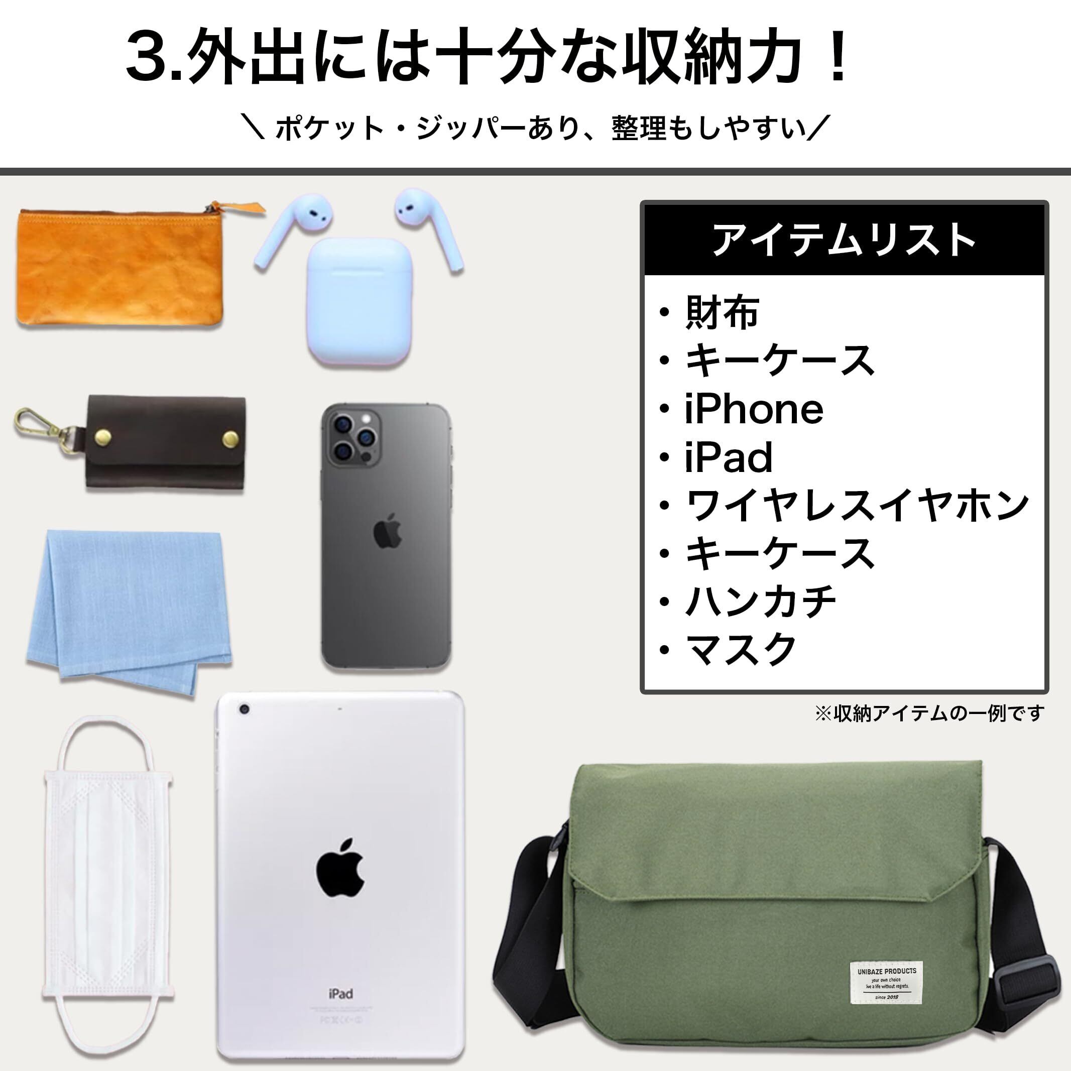 [ユニベイズ] [本当に沢山入る!] ショルダーバッグ メンズ レディース 小さめ 軽量 斜めがけ ナイロン シンプル ストリート