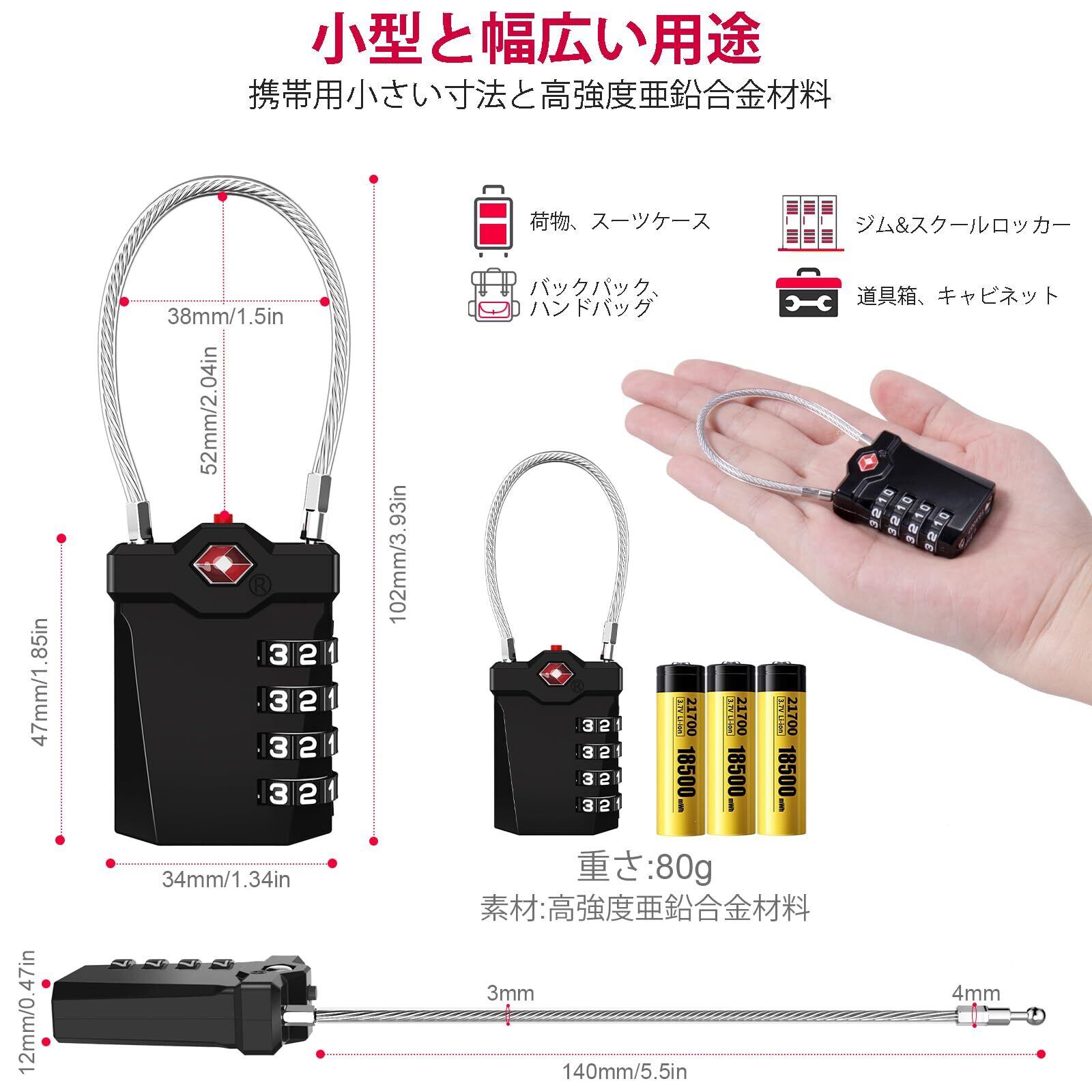 TSA ロック 南京錠 4桁ダイヤル式ロック ワイヤータイプ 旅行用 安心 防犯グッズ