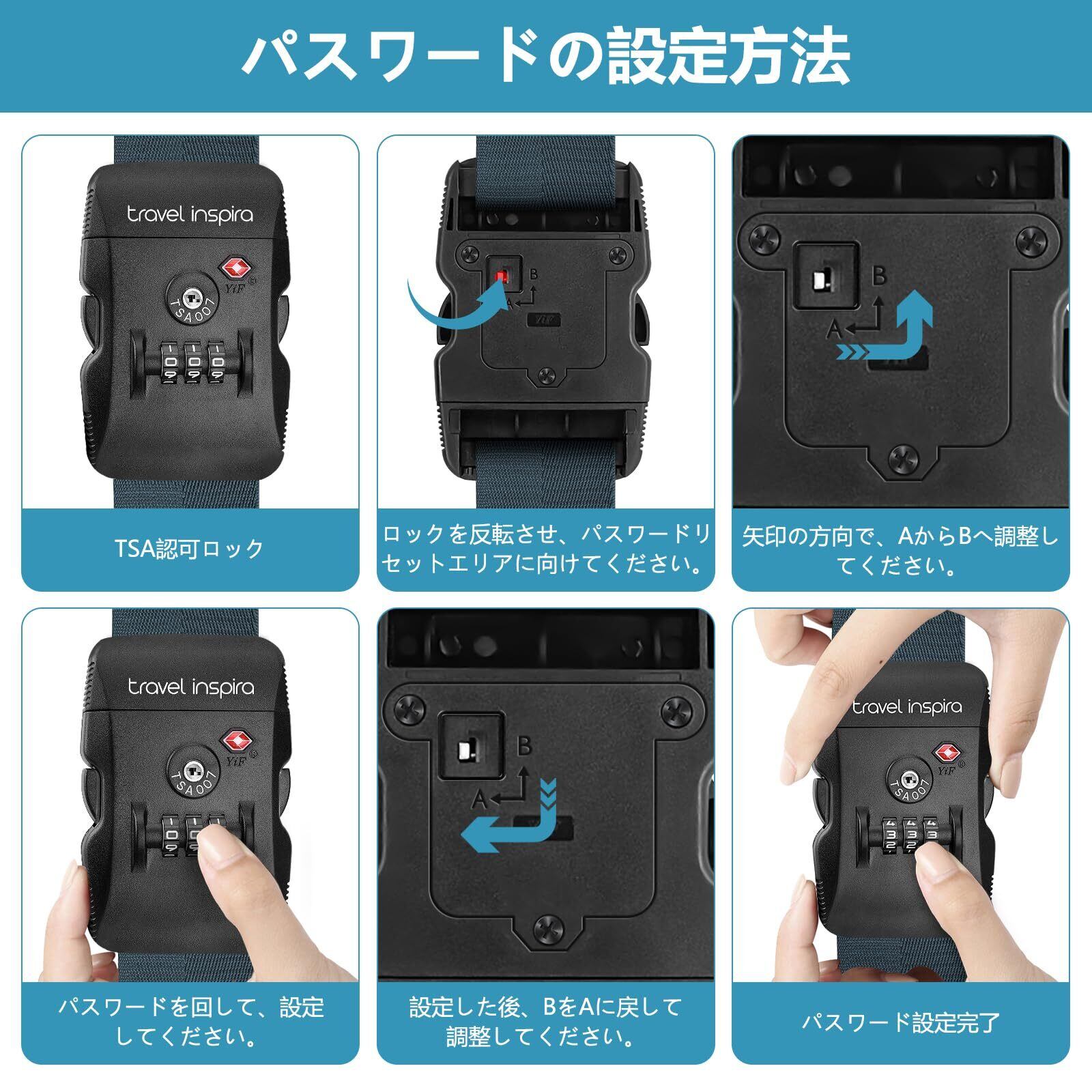 travel inspira 【TSAロック】スーツケースベルト 旅行 便利グッズ 荷締めベルト バンド 荷崩れ防止・102-200 CM 調整可能 I字型 軽量 3桁ダイヤル式 固定ベルト スーツケースベルト 鍵付き ずり落ち防止 旅行/出張に最適 (ネービー)