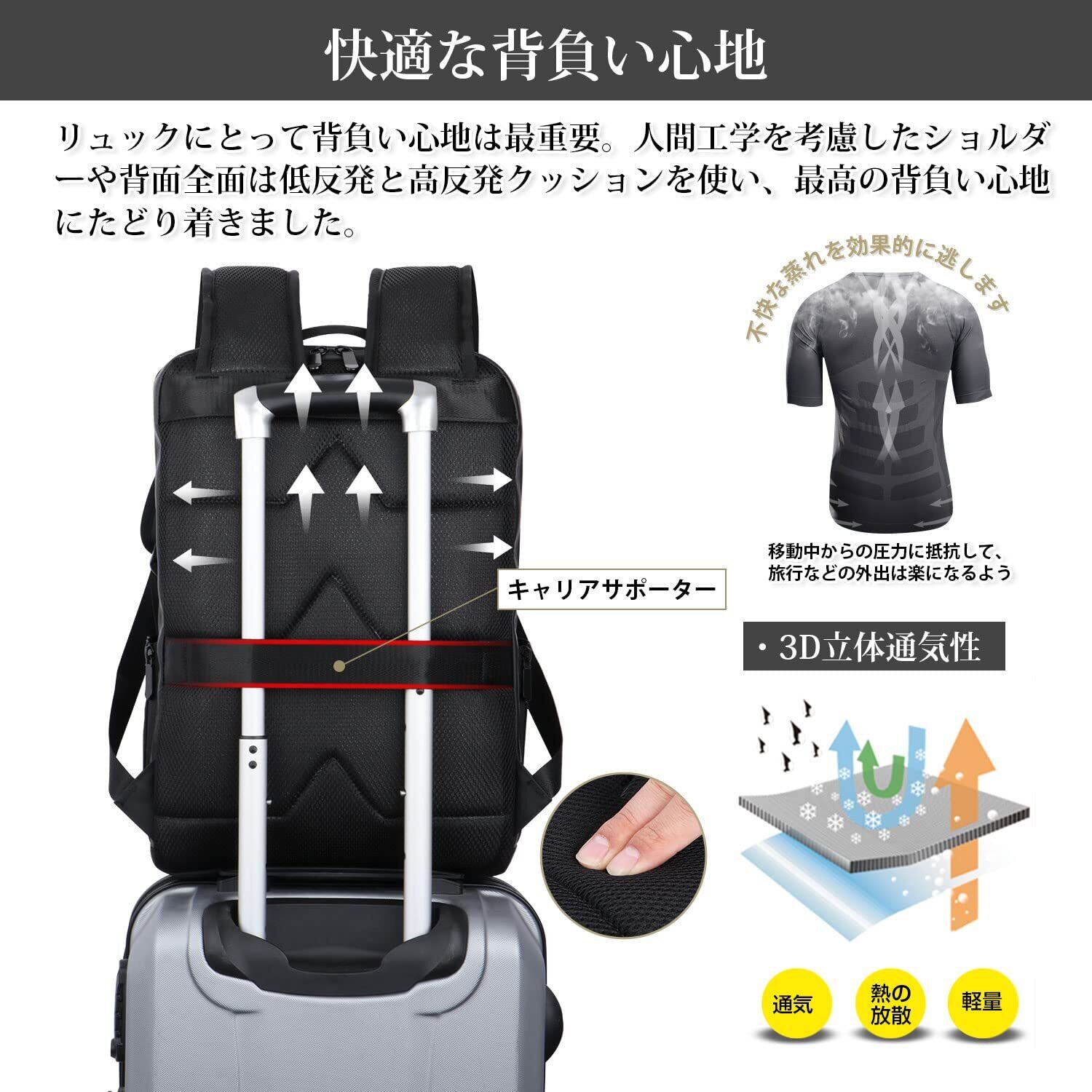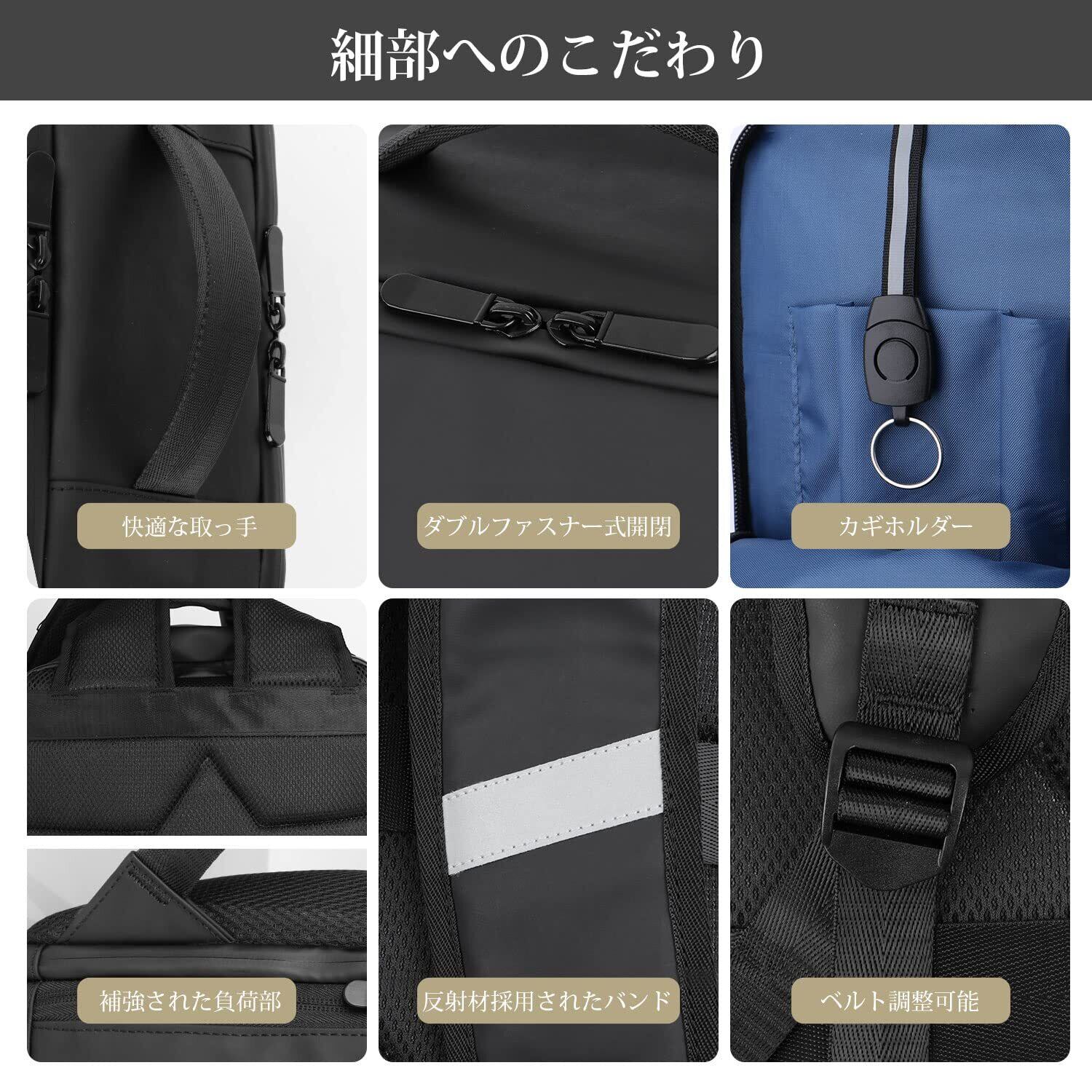 【使い勝手抜群】ポケットが小さめ大きめなど多数あるので、仕分けやすく取り出しやすいです。15.6インチPCやタブレットはPC専門ポケットへ、手帳・ペン・財布などの小物はサブポケットへ、書類・A4ファイル・衣類などはメインポケットへ、折り畳み式傘・水筒はサイドポケットに入れます。日常必要なアイテムをひとまとめにして楽々に持ち運べます。メインポケットは約75度大きく開くので、スムーズに出し入れ、たくさん入るスタイリッシュであるバックパックです。