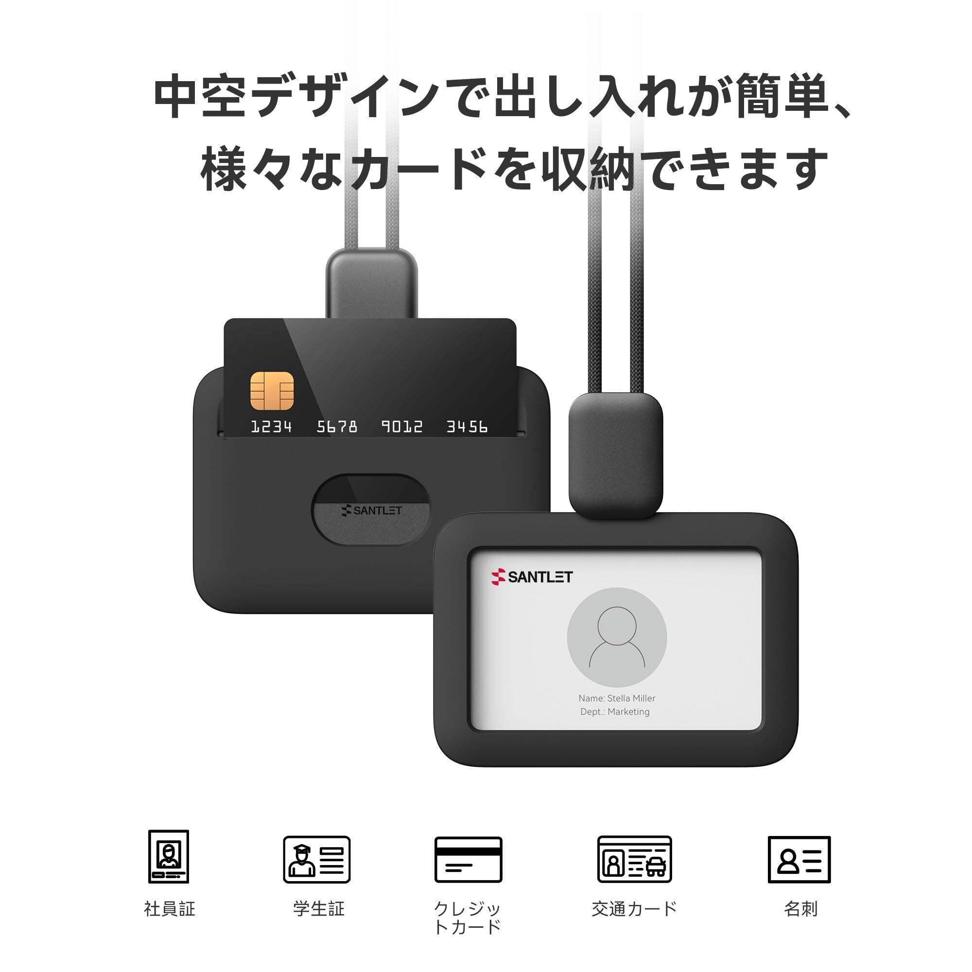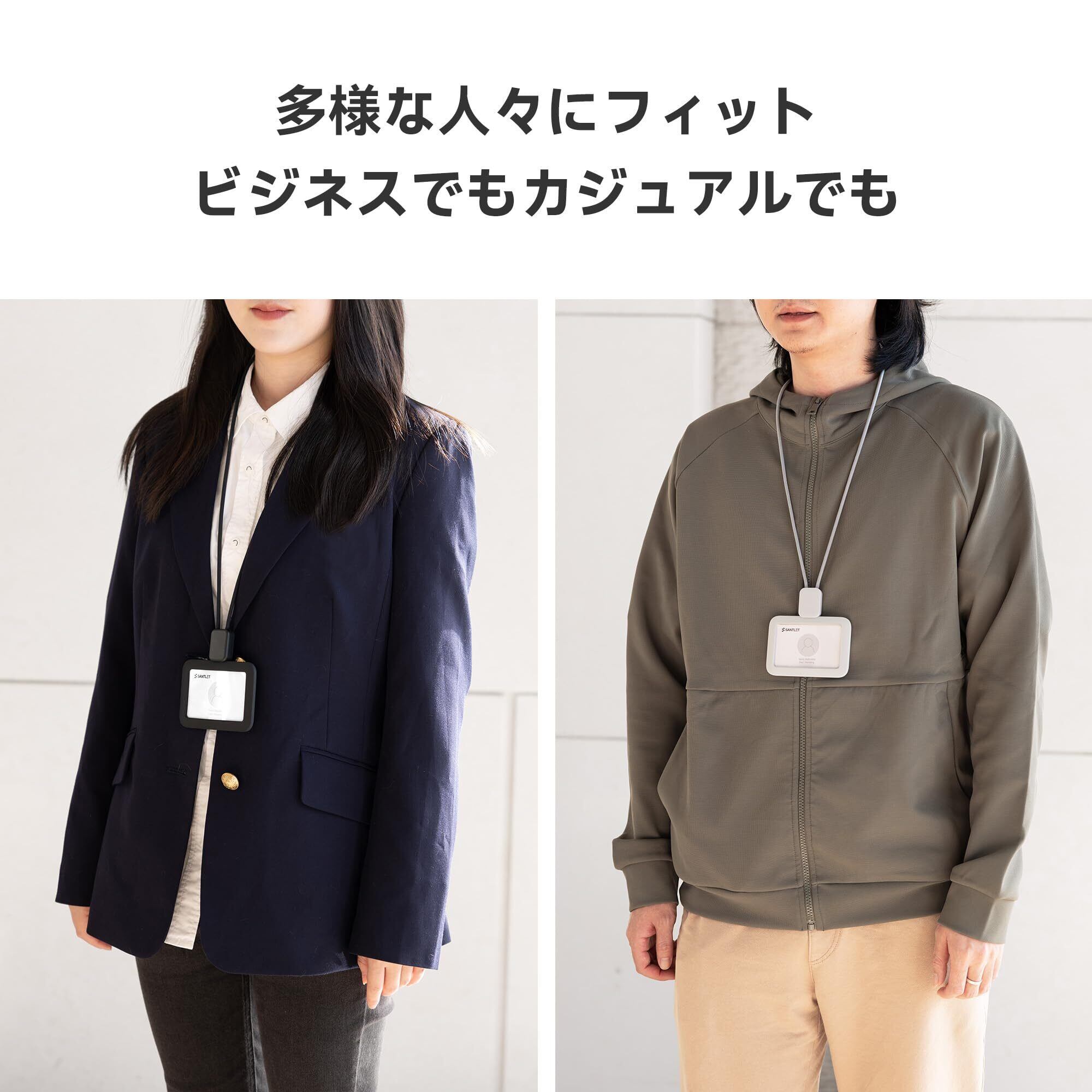 【スタイリッシュ&頑丈】SANTLET IDカードホルダーは、洗練されたミニマルなデザインと高品質なシリコン素材で構成されています。横型タイプは、見た目のおしゃれだけでなく、胸ポケットに入れられることでも好評です。このエレガントなカードホルダーは、日々頼りになる、誇り高くプロフェッショナルで自信を持って使えます。