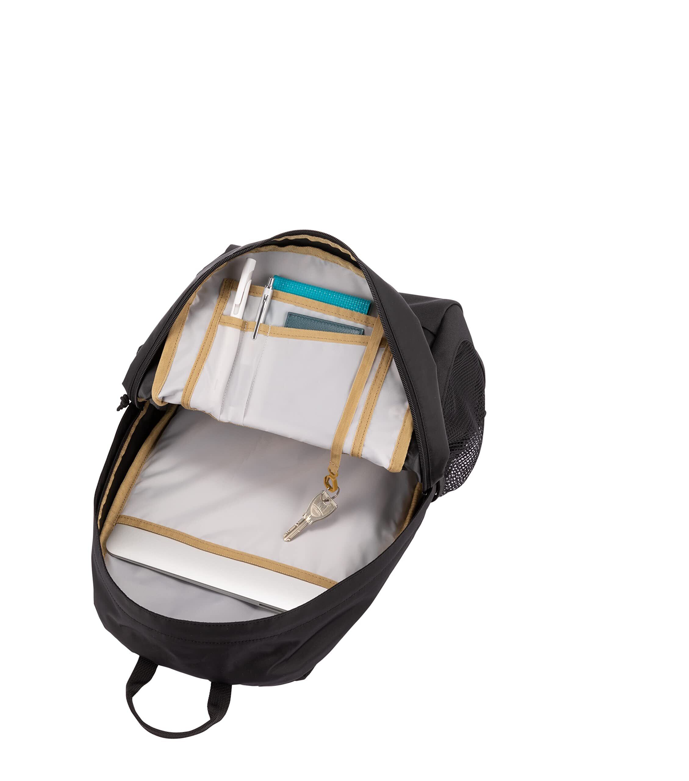 【豊富な収納スペース】メインコンパートメントに加えフロントには複数のポケット、サイドにはドリンク等を入れるメッシュポケットが装備されています。メインコンパートメント内もタブレット収納や、小物整理に便利なキーフック×1 ペンホルダー×2 オープンポケット×2が付いているためバッグ内も煩雑になりません。