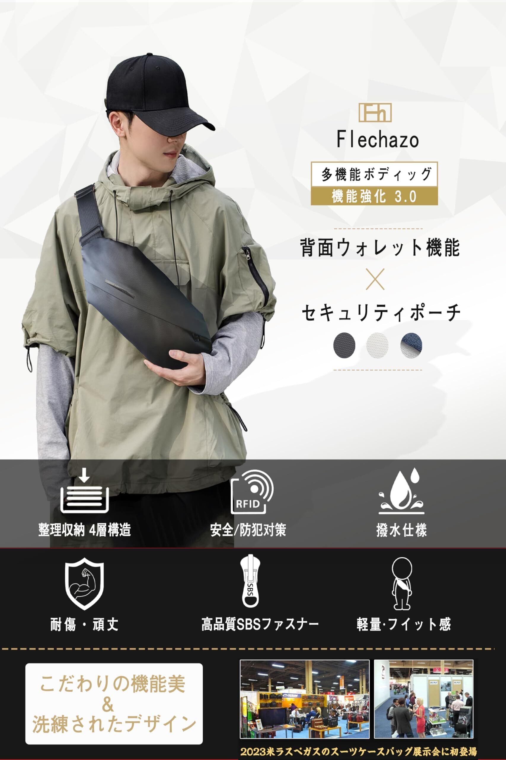 [Flechazo 機能強化3.0]ショルダーバッグ メンズ 斜めがけ ボディバッグ ウエストポーチ セキュリティポーチ コンパクト 小さめ 軽量 スキミング防止 rfid 軽量 撥水 多機能 3way 海外旅行、通勤、スポーツに適用(機能強化-ブラック)