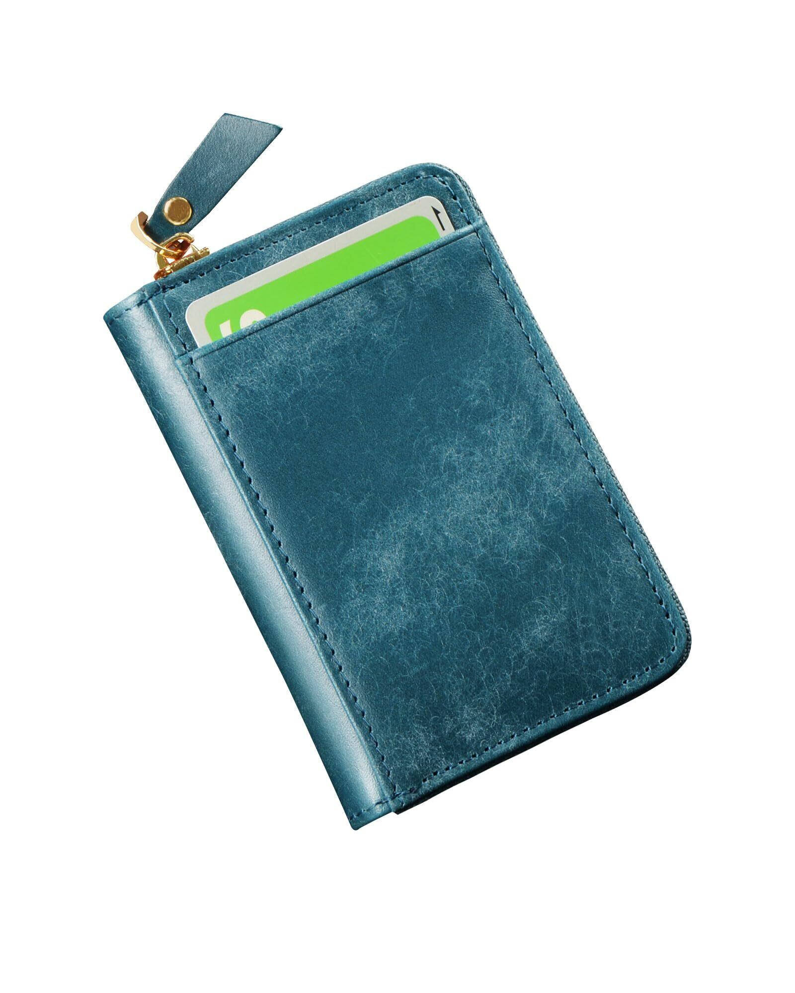 [Kawaoto] カードケース メンズ 大容量 カード入れ スキミング防止 本革 プエブロレザー 最大22枚収納 日本製 クレジットカードケース ykk シンプル ワイドポケット 小銭 コイン収納 (紺色)