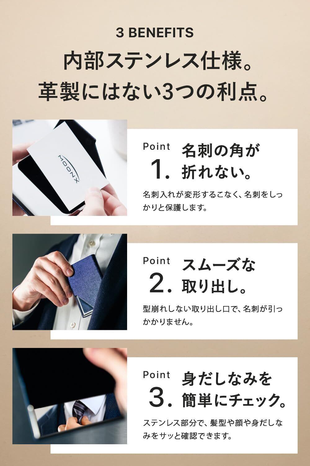 「名刺の角が折れないケースが欲しい!」というお客さまからの声を元に、本製品「メンズ名刺入れ」を開発しました。レディースにも使用していただけます。