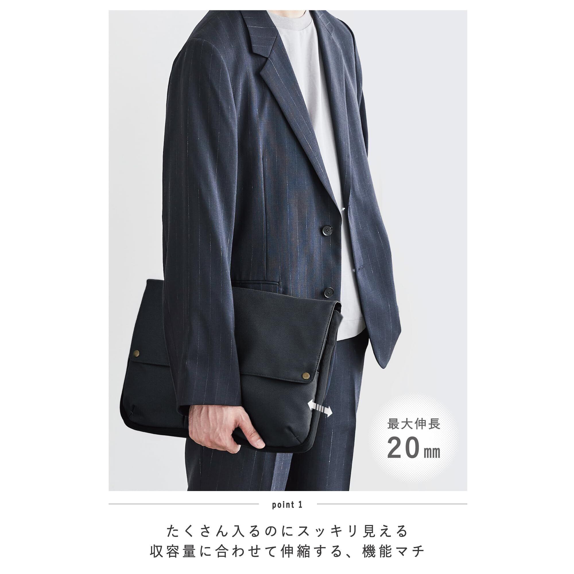 在宅とオフィスを横断して働くワーカーに合った機能とデザイン。日々変化する収容物の容量に合わせて伸縮性する機能マチと、小脇に抱えた時におしゃれに見えるデザイン性を両立。