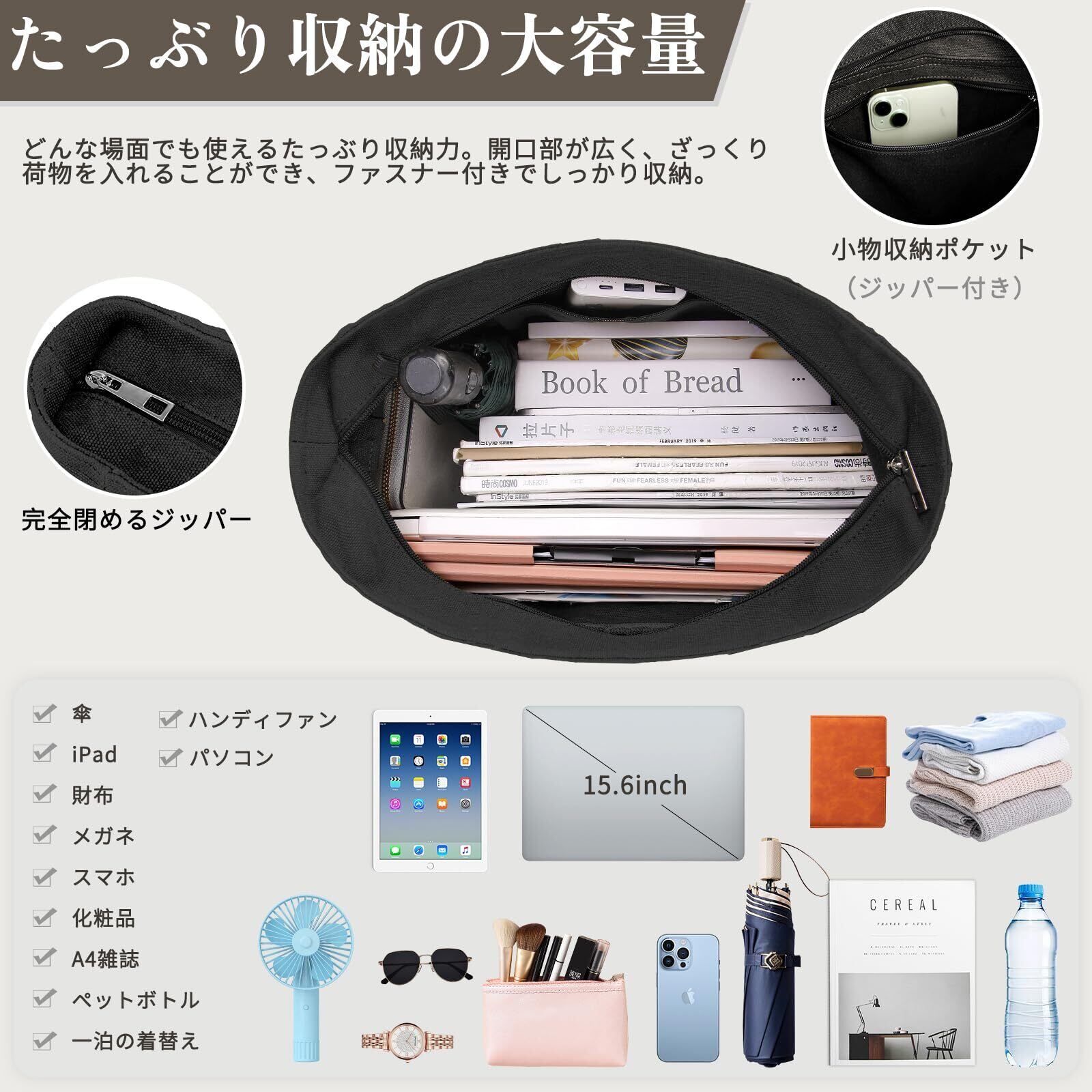 優れた防犯仕様:一般的なトートバッグに比べて、本商品のメイン収納部はファスナーで完全閉めできる仕様になので、バスや電車など混雑して場所でもプライバシー保護になれており、中身の物を盗まれることがありません