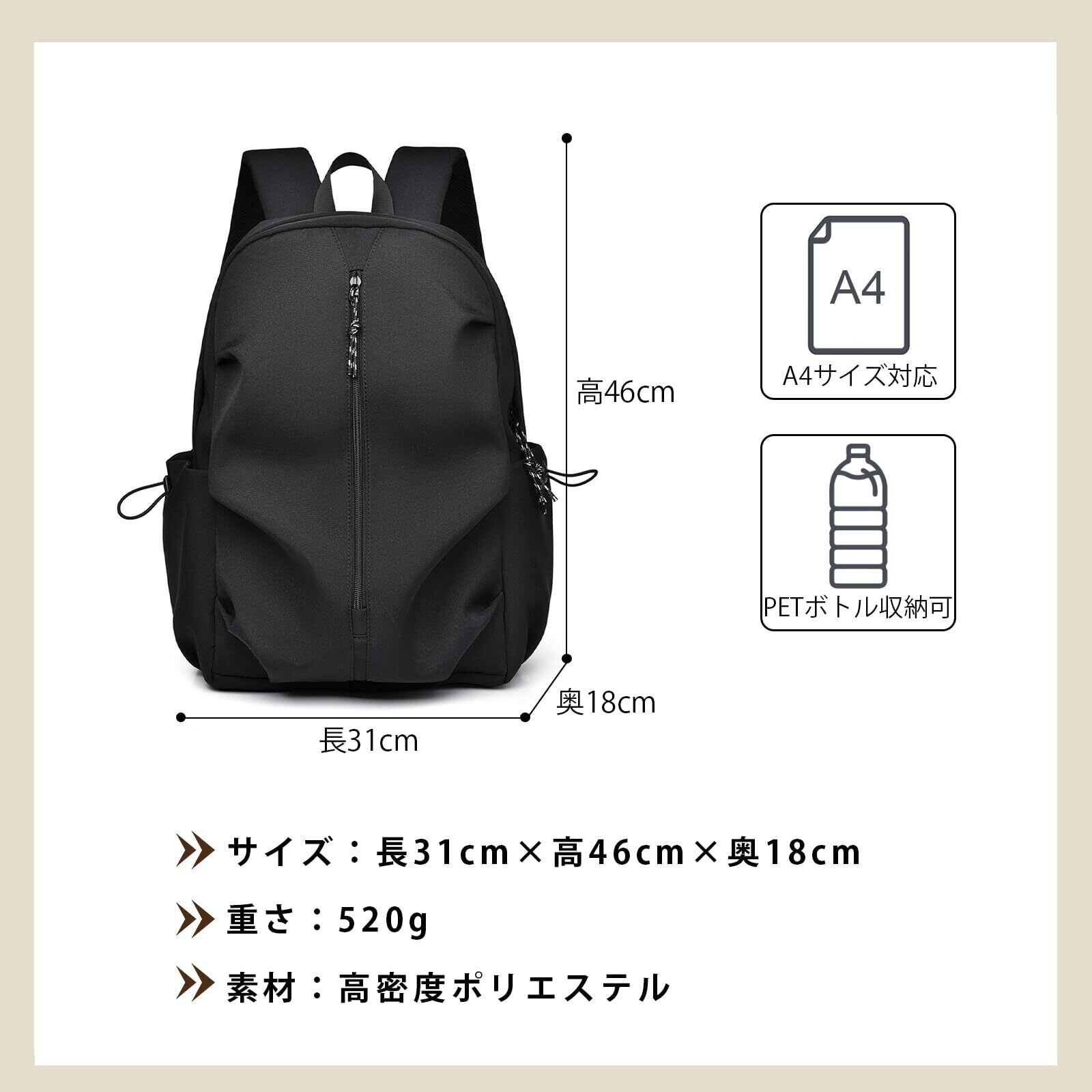 「洗練された大容量」科学的に設計された大容量には、前部の主ポケット、サイドの伸縮ポケット、内部の小物ポケット、独立したノートパソコンスペース、後部の防犯ポケットが備わっており、整理整頓が得意です。高さ46cm、幅31cm、マチ18cm、0.52kgの軽量仕様で、調節可能なショルダーベルトも搭載されています。※ご注意:製品の重量には、約20gほどの誤差が生じる場合があります。予めご理解の程、お願い申し上げます。