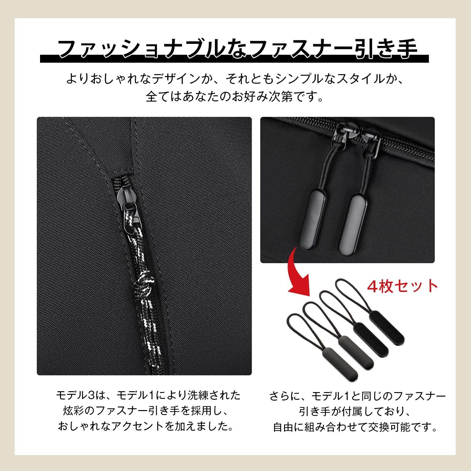 「ファッショナブルなファスナー引き手」モデル3は、モデル1により洗練された素敵なファスナー引き手を採用し、バッグ全体におしゃれなアクセントを加えました。さらに、バッグ内にはモデル1と同じの4つのファスナー引き手が付属しており、自由に組み合わせて交換可能です。よりおしゃれなデザインか、それともシンプルなスタイルか、全てはあなたのお好み次第です。
