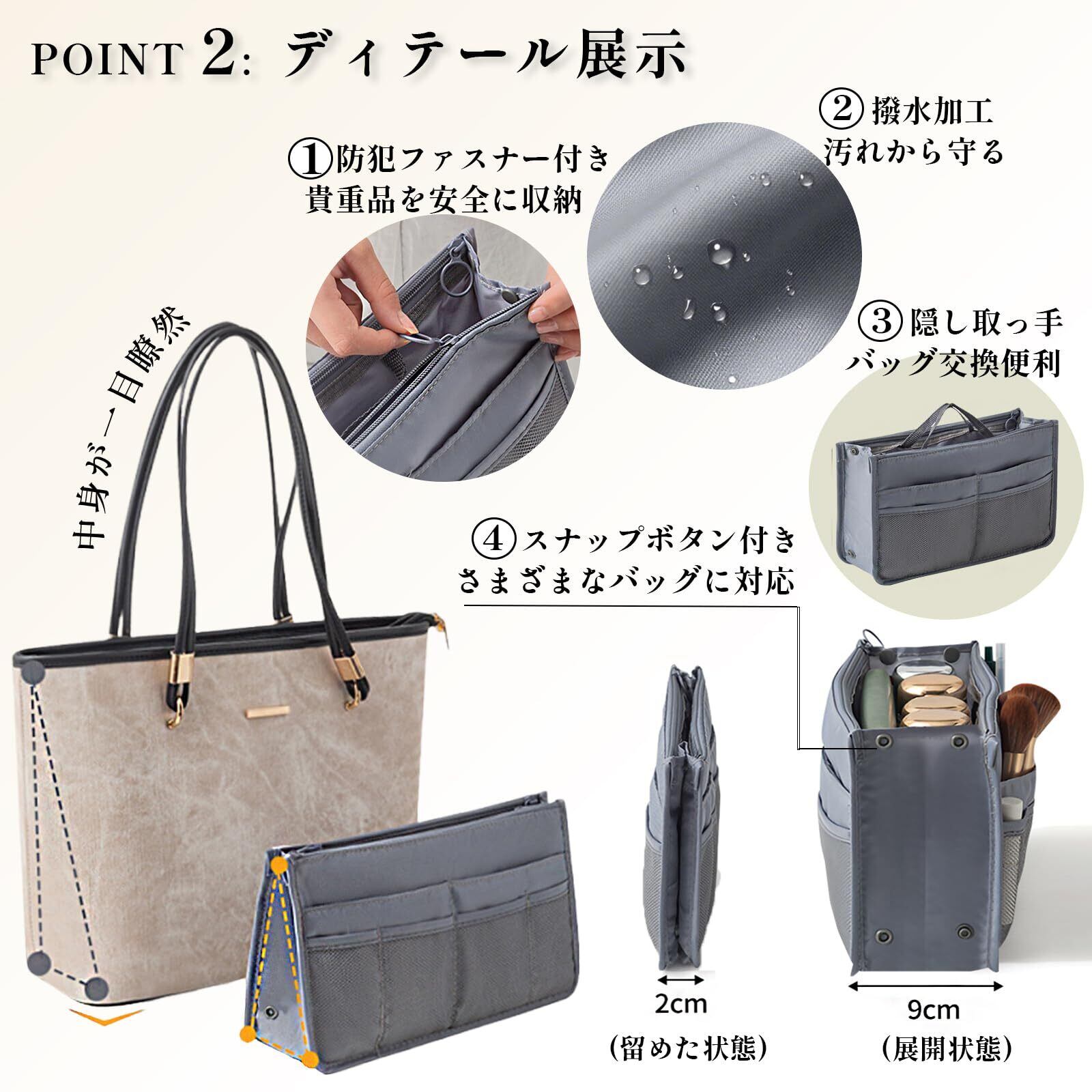 【マルチシーン対応】表・裏・内側に様々なサイズのポケットが付き、財布、鍵、充電ケーブル、USBメモリ、スマホなどの小物や化粧品、手帳、ペンなど細かい物も散らからずに整理可能!ゴチャゴチャしているバッグの中がすっきりと片付きます。中身が一目瞭然で、取り出し易く使いやすい。子供の初めての社会人デビューにぴったりの贈り物。卒業式、就職祝い、母の日、クリスマス、誕生日贈り物、新年祝いなど場合にも適合。多様なシーンで使うことができます。