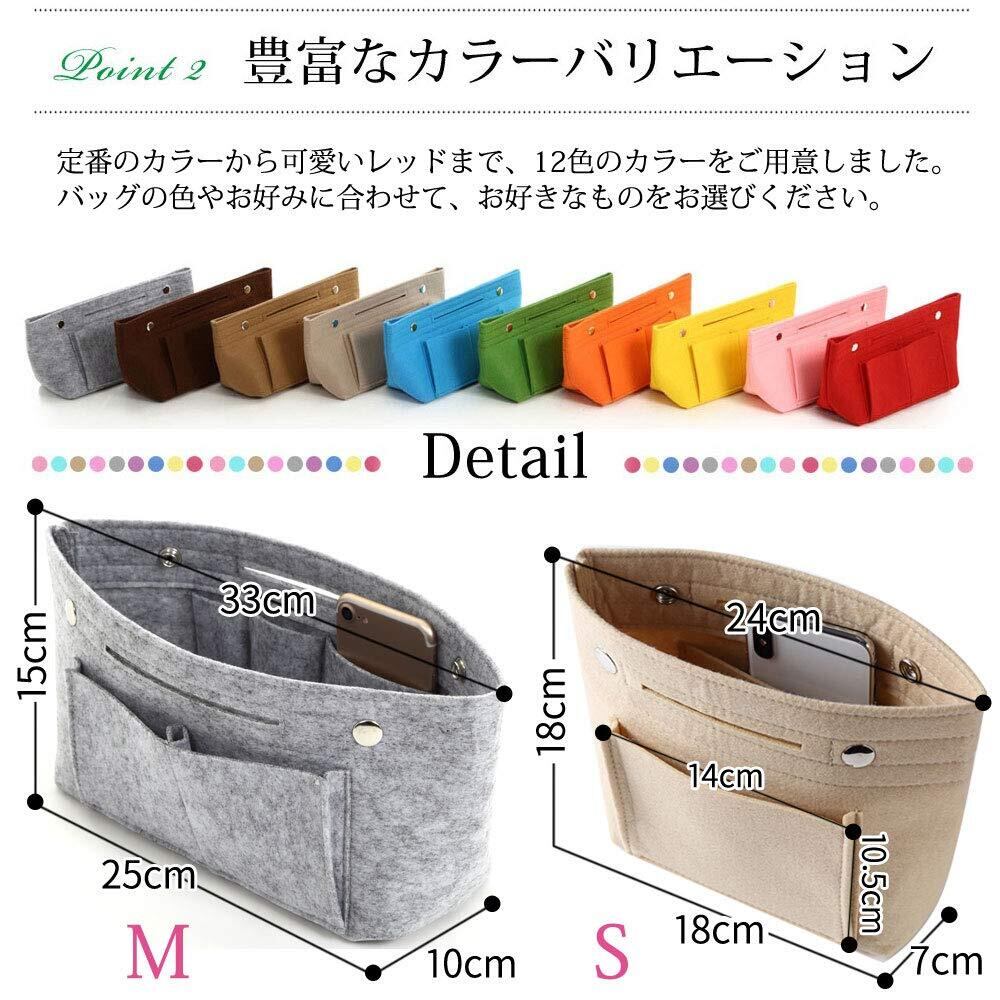ddice バッグインバッグ フェルト 小さめ Sサイズ インナーバッグ 軽量 バッグ ポーチ レディース バッグの中を整理整頓 バックインバック (Sサイズ-ベージュ)