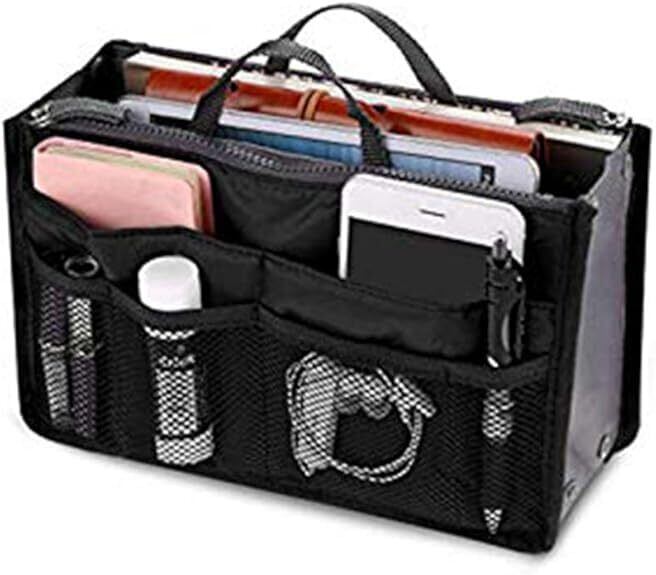 バッグ メイク ボックス メイクバッグ 多機能 大容量 収納バッグ インナーバッグ 化粧品収納ポーチ バッグインバッグ 軽量 旅行 通勤 便利グッズ(ブラック)