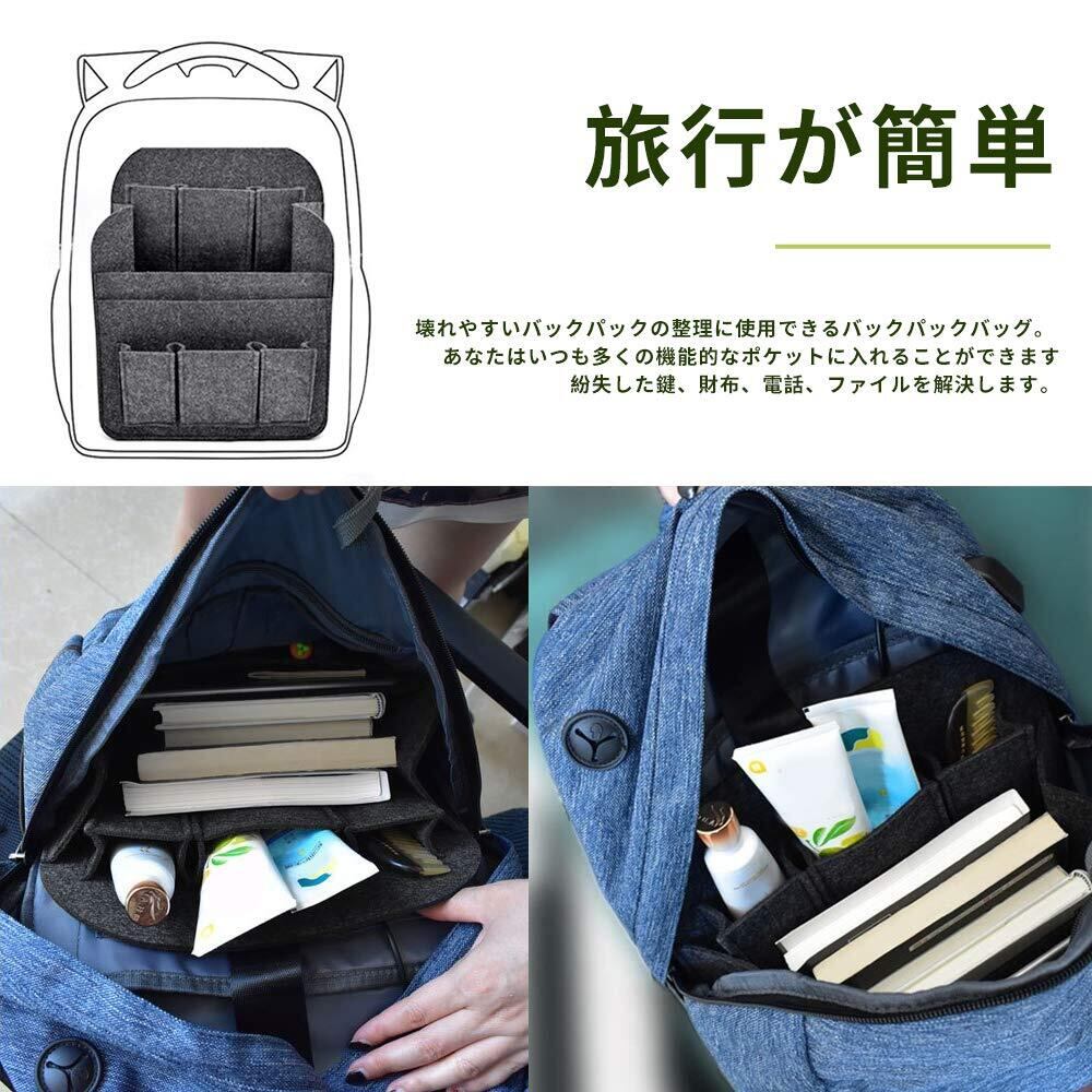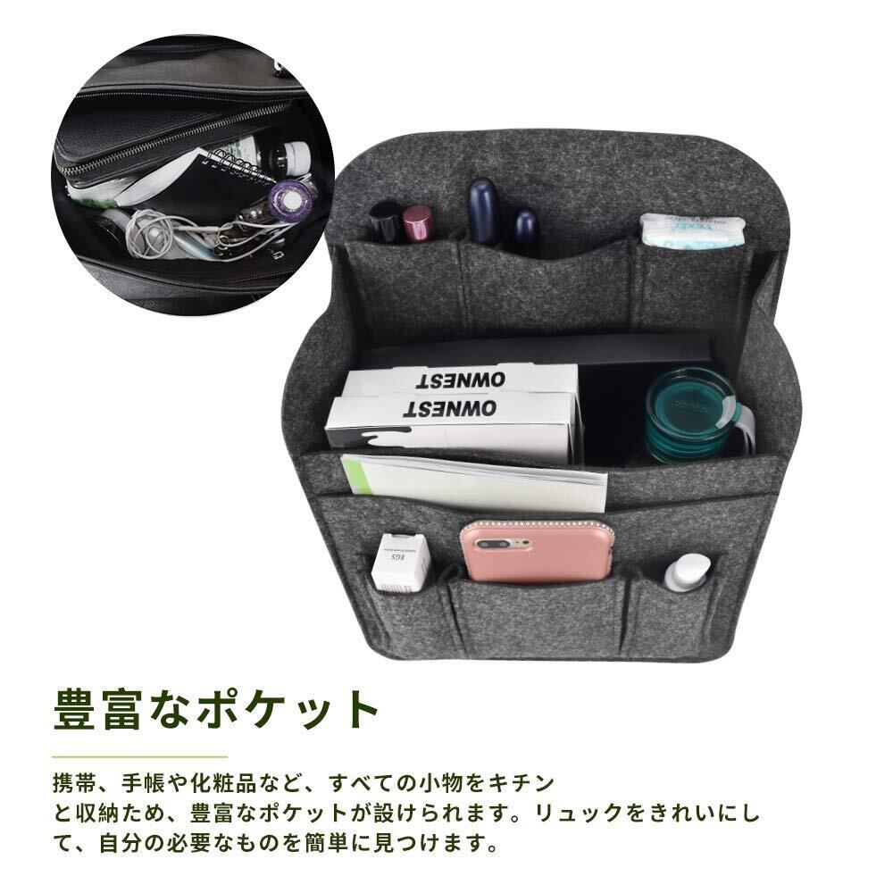 5.【大容量で超軽量165g!】高級フェルト生地ですので、超軽い、型崩れしにくい、たくさんものを入れてもしっかりしています。重さはただ165gで、リュックの重さもそれほど変わらないので持ち運びにも苦労しません。何か質問がございましたらお気軽にご連絡ください。私ともは24時間以内にご返事いたします。