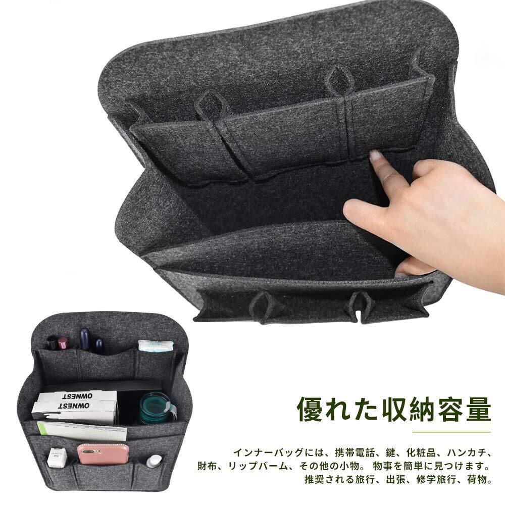 Newseego バッグインバッグ リュック インナーバッグ フェルト A4 B4 B5 縦 化粧ポーチ 縦型 自立 iPad 小物収納ポーチ 防水 軽量 大きい 収納バッグ 旅行 通勤 小物 整理 軽量 大容量 レディース メンズ (グレー)