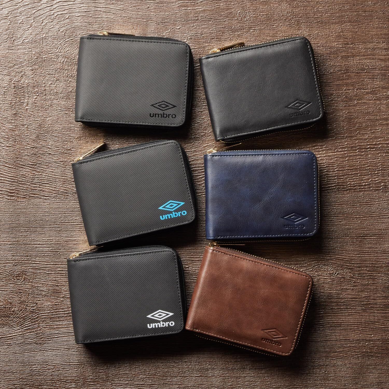 [アンブロ] メンズ 二つ折り 折財布ラウンドファスナー (Black/Blue)