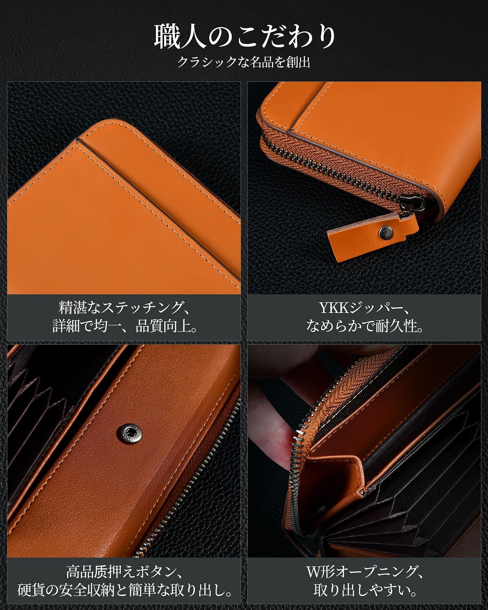 【高級本革の美しさと耐久性】 本品は100%天然牛革を使用した本格的な長財布です。なめらかな手触りと深みのあるツヤが、経年変化とともに味わい深い風合いへと進化(経年美)。丈夫な縫製と厚みのある皮革で、日常使いにも長く愛用いただけます。